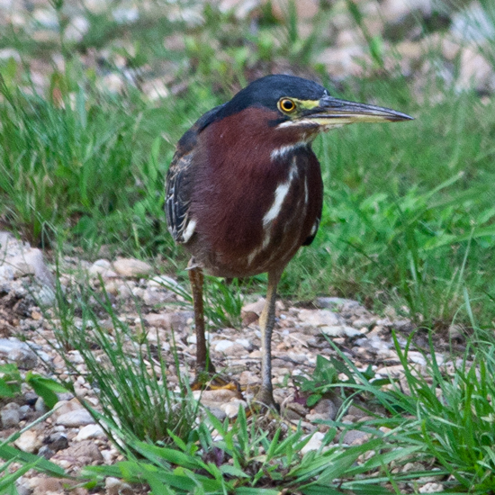 I decided to add one other photo of the green heron that I managed to take before he flew across the little pond to the rock wall. It is a little more of an unposed shot than the first one, which almost looks staged, and captures him in his more natural environment.