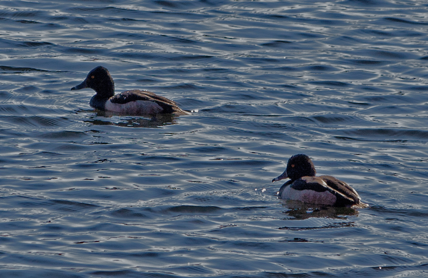 The first photo showed the Hooded Merganser ducks after the encounter with the Mallards, so sequentially it should go here. Did you notice that the duck formation had changed and that the males were now in the lead? Was this a protective, chivalrous gesture on their part?