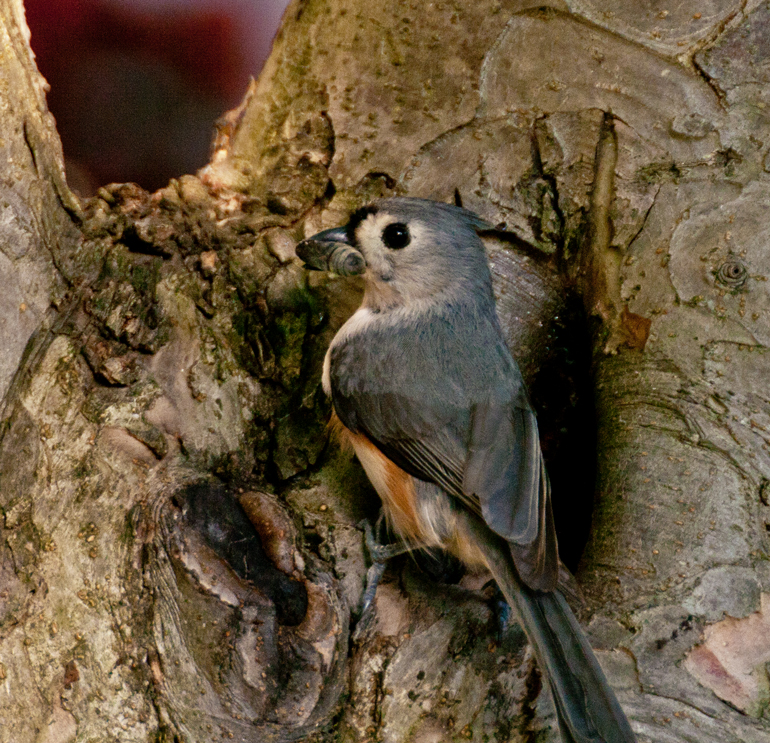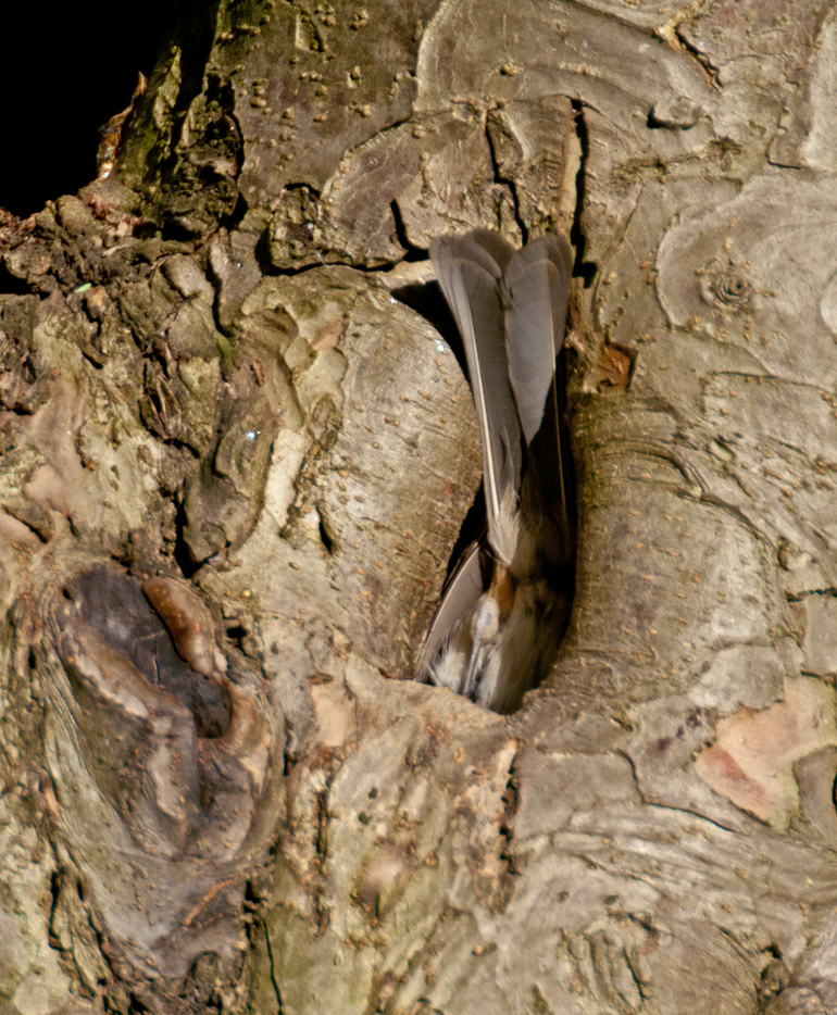A little fearful of doing it myself, I called my friend (and fellow blogger) Cindy Dyer, who was both willing and able to place the small bird back with its siblings in the cavity of the tree. Yesterday evening, I made a quick check of them and they seem to be ok.