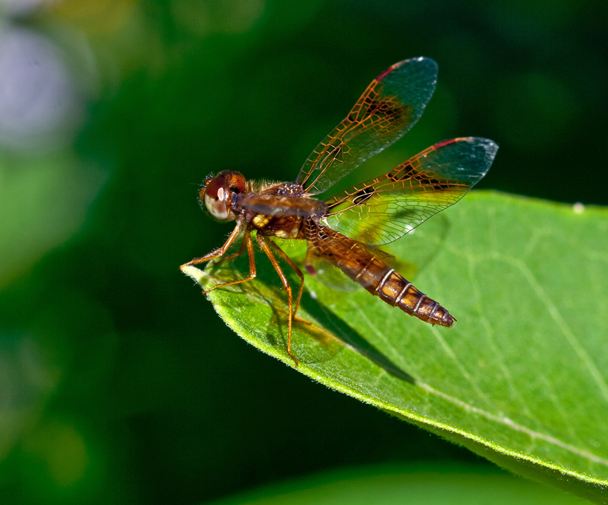 This dragonfly seemed even smaller than the Eastern Amberwing dragonfly (Perithemis tenera), the smallest dragonfly that I had encountered, and I figured it couldn’t be an Eastern Amberwing, because it did not have amber wings. I was wrong. Once again I had allowed myself to be misled by the name of a species. It turns out that this is almost certainly a female Eastern Amberwing, and females have clear wings with brown spots, not amber wings.