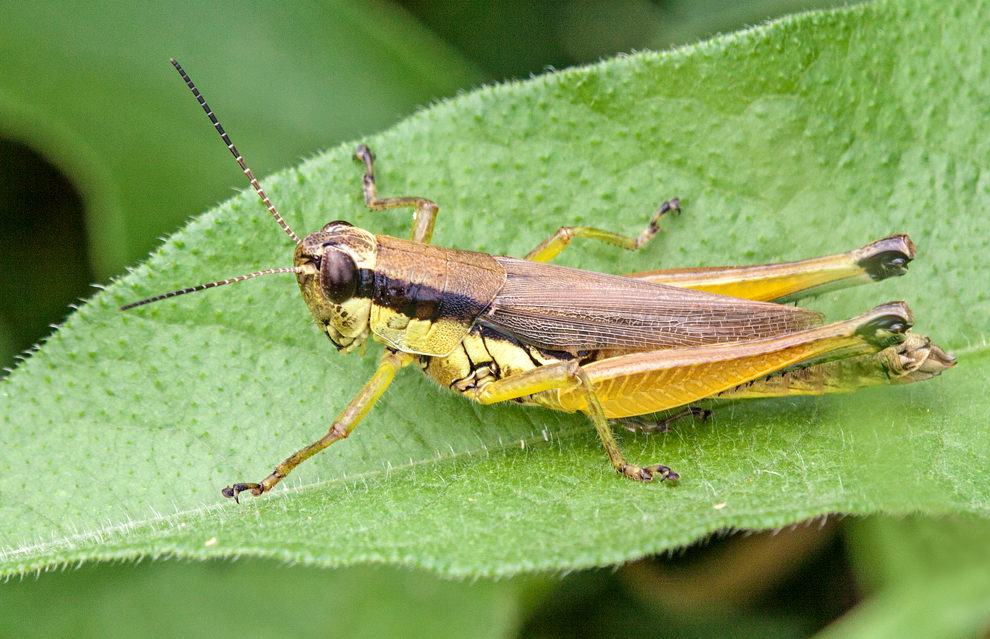 Until I got a really close-up shot, I never realized that the body of a grasshopper had so many amazing textures. Previously, I had naively assumed that the body parts were relatively smooth. Click on the image to see a higher-resolution view of the details of the “shoulders,” legs, wings, and antennae.