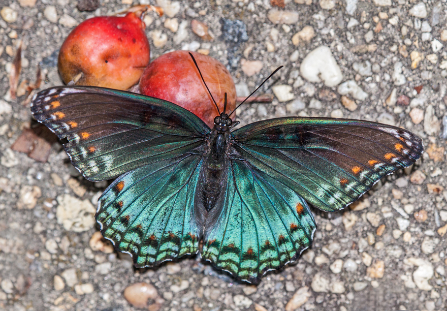 Funny that the butterfly is called Red-spotted Purple, when it is clearly an Orange-spotted Blue-Green (put a little yellow in there and you’d have the whole rainbow).
