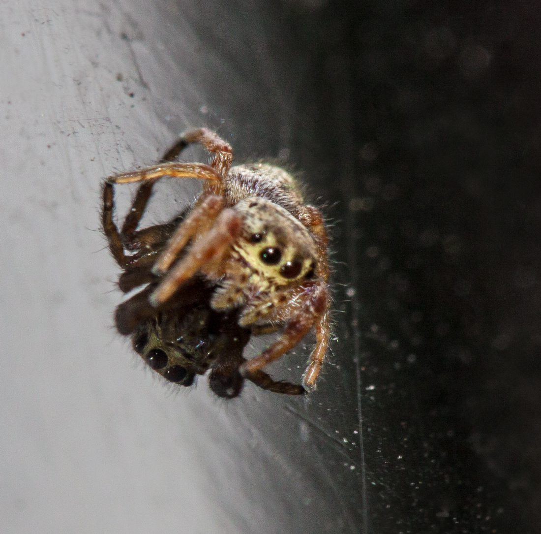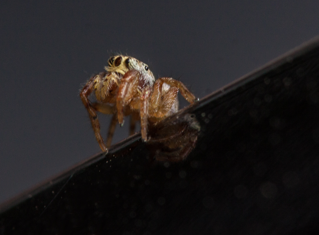 I am always thrilled when I find a jumping spider. There is something special about all of those eyes that simply fascinates me and I am particularly happy when I manage to get reflections in the eyes.