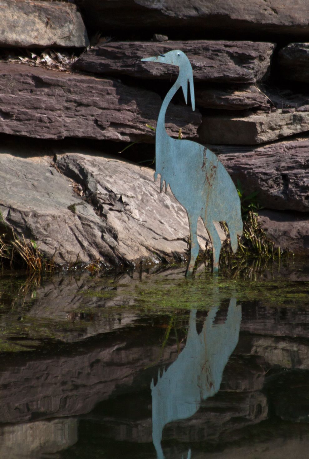 Metal Great Blue Heron in pond
