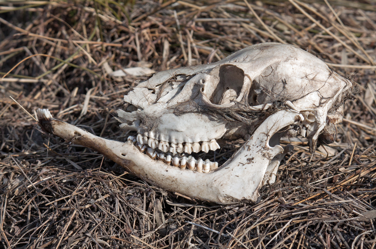 The skull is the second photo is that of a White-tailed Deer (Odocoileus virginianus). Other body parts of the deer were scattered about in the same area where I spotted the skull. There are concerns that the deer population is too high for the park to support, so there is a chance this deer died from starvation.