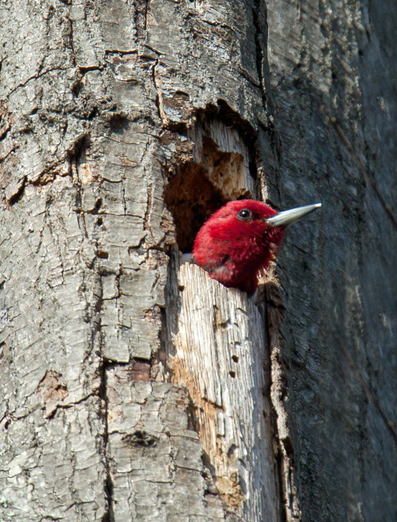 Normally Wood Ducks fly away from me and I often don’t even get to see them before they disappear in the distance. This time, however, the birds flew across my field of vision and I was able to capture this long-distance shot as they passed me. I really like the way that we get a glimpse of the beautiful colors on the inside part of the wings of these striking ducks.