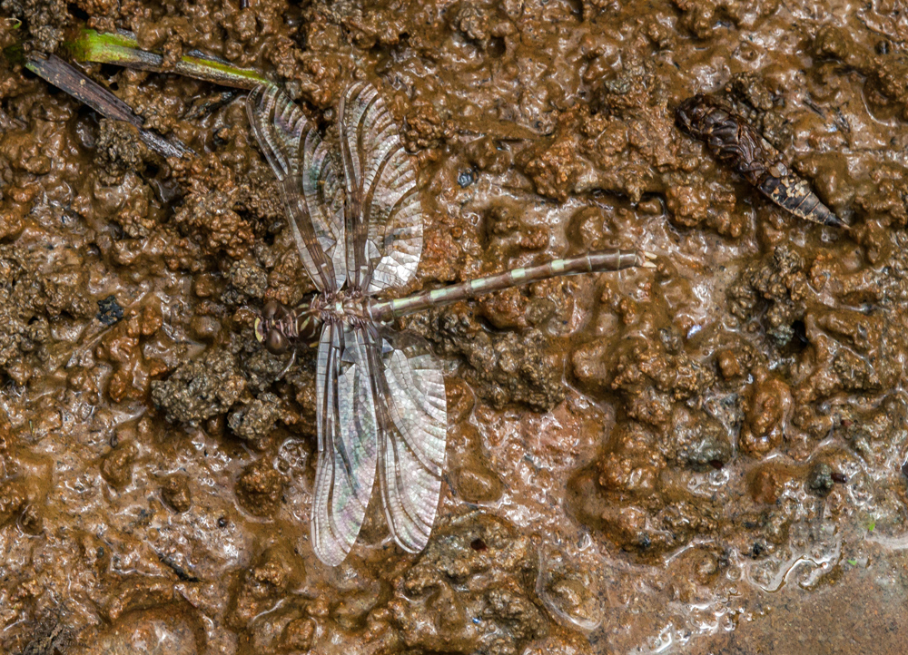 Nymphs of this species of dragonfly crawl out of the water onto a sandy beach to begin the process and I knew of the bank of a stream where this had been taking place over the past week or so, having observed there newly emerged teneral dragonflies and the discarded exoskeletons known as exuviae. However, what were the chances that I would be able to be at the right location at precisely the right time? I figured the odds were about the same as winning the lottery.