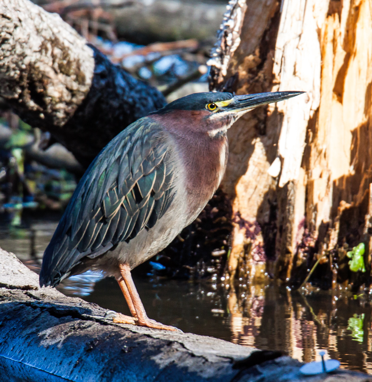 I spotted the most likely target log and sat on the bank of the ditch to see if the dragonflies would come. It didn’t take long for them to arrive. Sometimes it was just one dragonfly, while at other times there were two or even three of them laying eggs in the same log. I was shooting with a 180mm macro lens, so I could not zoom out to include all of them (and I did not want to move for fear of scaring them away). In one of the photos, you can see two of the Swamp Darners in action and part of the abdomen of a third one in the upper left corner.