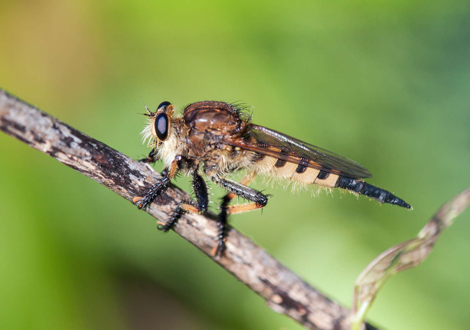 Red-footed Cannibalflies are special to me for an unusual reason—a posting that I did about one in August 2013 has proven to be my most widely viewed normal blog posting over time. (I did have a couple of postings about the rescue of an injured bald eagle that received a huge boost in readership when linked in local media reports, but that spike was a one-time occurrence and I tend to exclude those posts in my calculations.) The enduring popularity of that posting is a bit of a mystery to me. Yes, the subject is fascinating, but the accompanying photos are not really my best work.