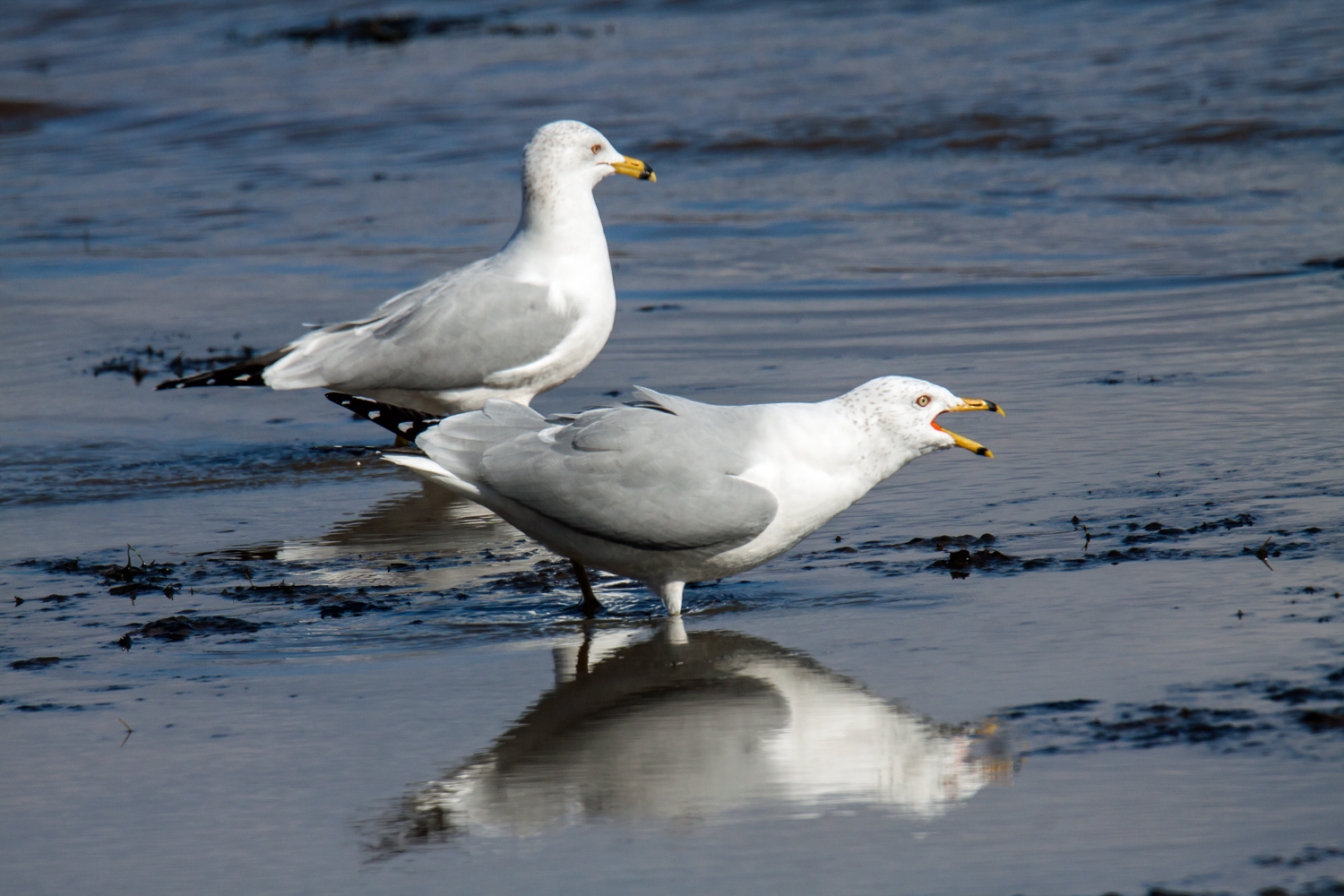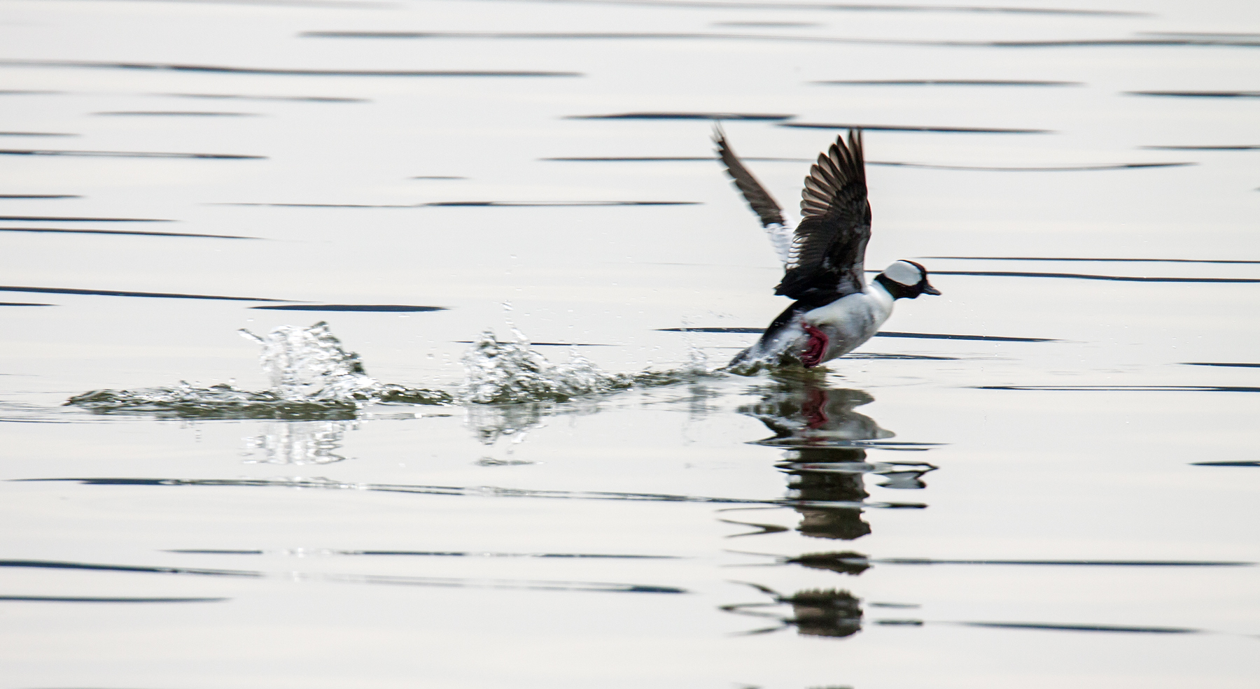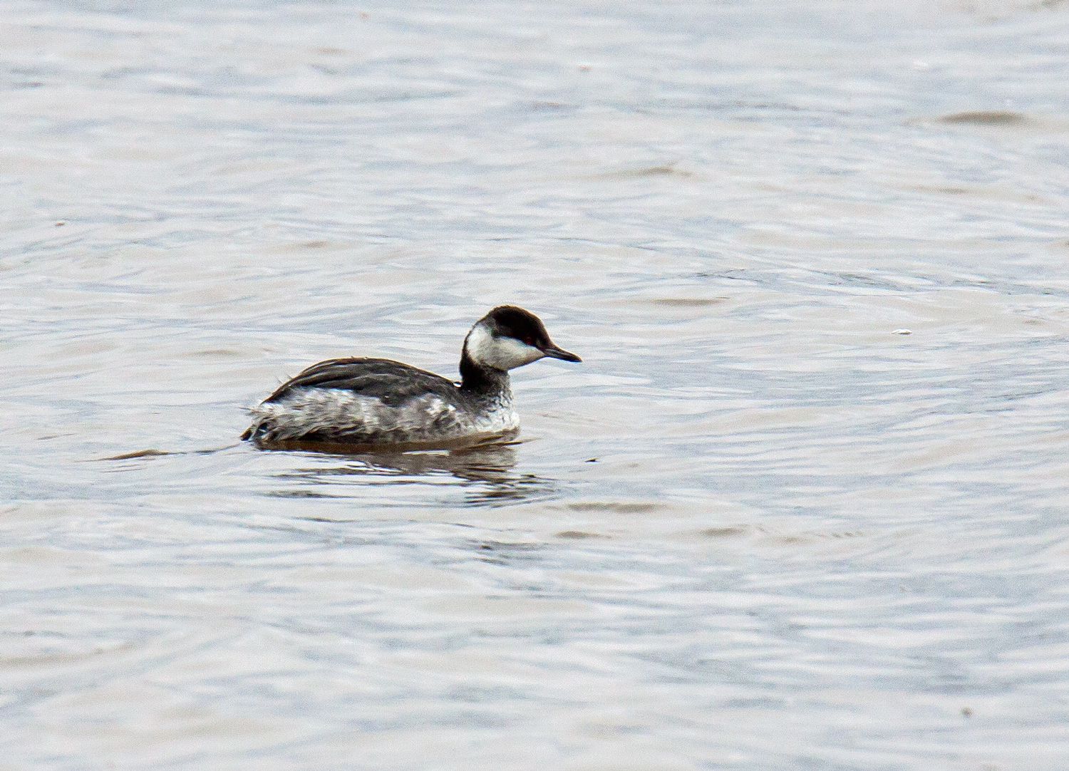 When I looked at the Cornell Lab of Ornithology page for this species, I was a little shocked to see how different this bird looks when in breeding plumage. “Breeding adults have black heads with rich golden tufts, black back, and cinnamon neck, breast, and sides.” Wow! That would be quite a sight to see, but, alas, it looks like Horned Grebes do not breed in my area and are only visitors here for the winter.