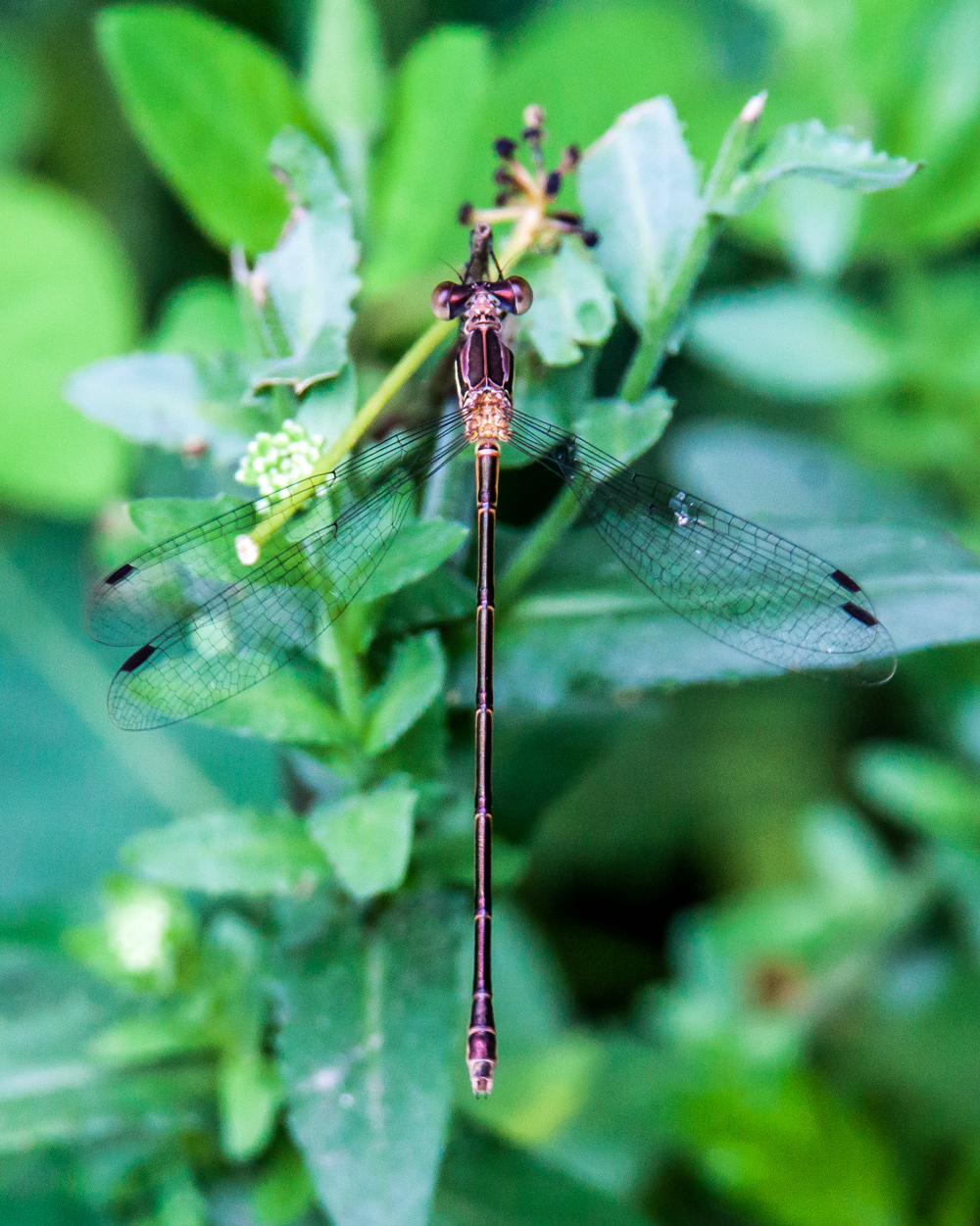 We searched and searched for what seemed like hours and came up empty-handed. Just when it seemed like we might be getting ready to concede defeat, I spotted what I think was a Twin-spotted Spiketail. I called out to Walter and put my camera to my eye. Alas, the dragonfly flew away before I could get a shot. Previously he and I had a conversation about whether it was better to have seen none or to have seen one and not gotten a shot. I was now faced with the second case.