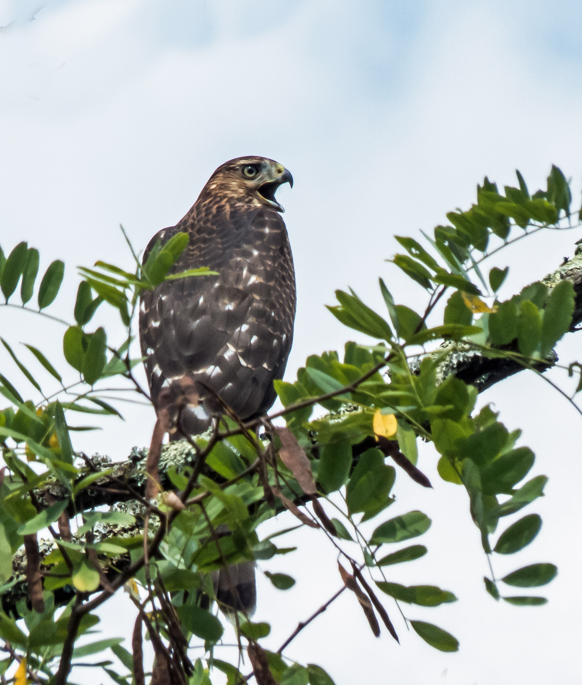 I’m a real beginner in watercolors and probably should stick to exercises and simple subjects, but that is not what I want to paint. I’ll look at some of my wildlife photos and think, “I’d like to try to paint that,” knowing full well that I don’t really have the skills to do so. I figure, though, that I’ll learn as I go along, seeing what works and doesn’t work. So yesterday evening I decided to have a go at painting an immature Cooper’s Hawk (Accipiter cooperii) that I photographed recently.