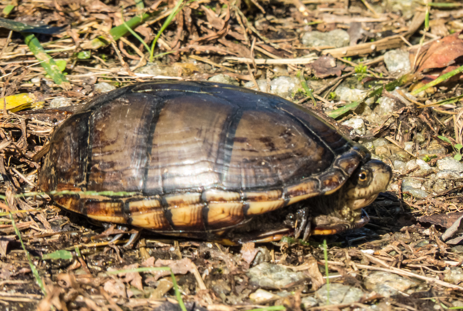 As I was exploring Occoquan Bay National Wildlife Refuge earlier this week, I stumbled upon this cute little Southeastern Mud Turtle (Kinosternon subrubrum subrubrum). It looks like the little turtle had attempted to withdraw its head into its shell, but it does not quite fit.