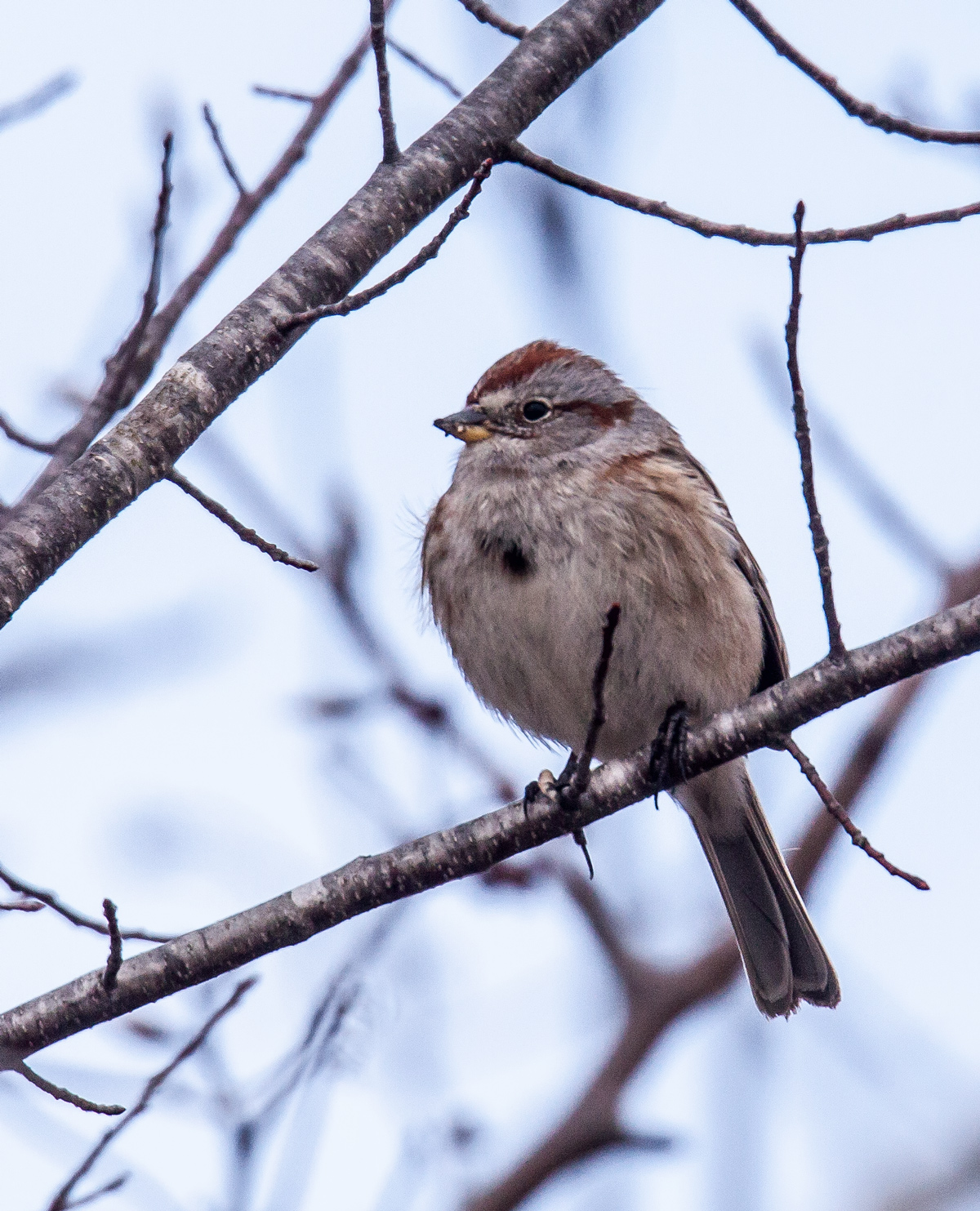 How long a lens do you need to photograph birds? Conventional wisdom dictates that you need a lens with a focal length of at least 300mm and ideally much longer than that. I generally use my Tamron 150-600mm lens when I anticipate shooting birds, especially small ones. If I want to get even closer, the zoom lens of my Canon SX50 has a field of view equivalent to 1200mm.