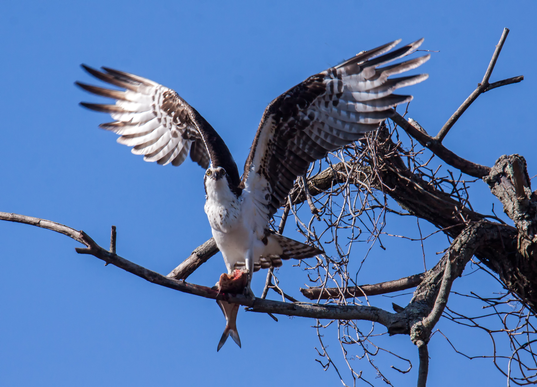 I don’t know for sure if this is the place where the bluebirds plan to make their nest and I never did see either of the bluebirds enter the nesting box. However, a short time later I spotted the male bluebird with nesting material in his bill, so it is quite likely that they are determined to construct a nest somewhere nearby.