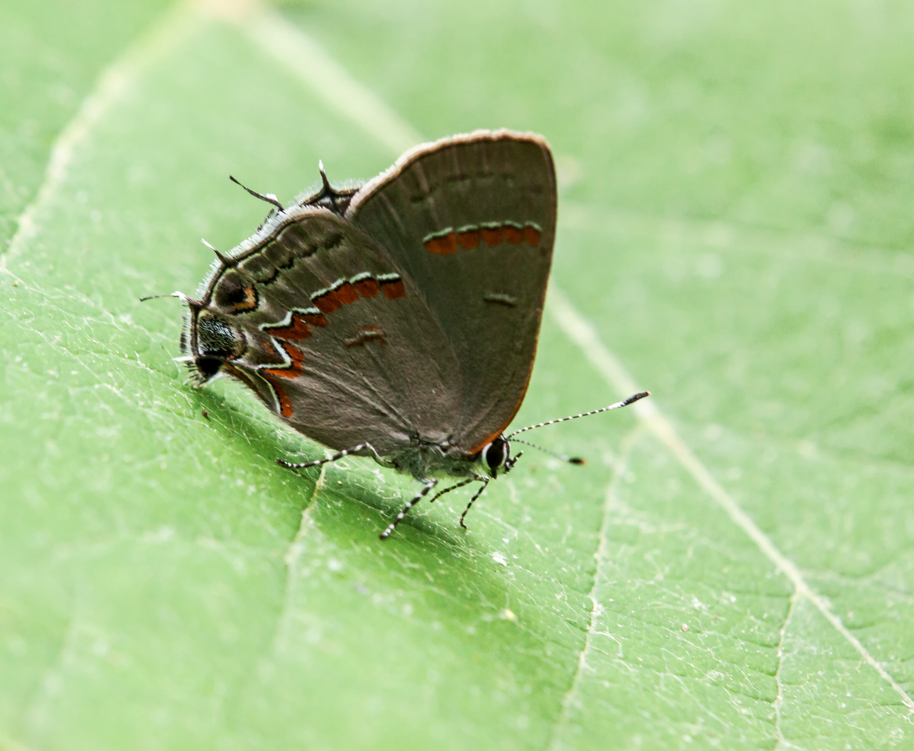 Walter has a lot more experience with dragonflies than I do and he grew visibly excited when he looked at the dragonfly though his camera. It was not a clubtail at all, but a relatively uncommon Arrowhead Spiketail dragonfly (Cordulegaster obliqua). Not only was it an Arrowhead Spiketail, it was a female and females tend to be harder to find than males. As I got closer, I could see the “spike” protruding from the tip of the abdomen, which showed it was a female, and the telltale arrow shaped markings all the way down the abdomen. We believe that this was the first documented sighting of an Arrowhead Spiketail in Virginia this year.