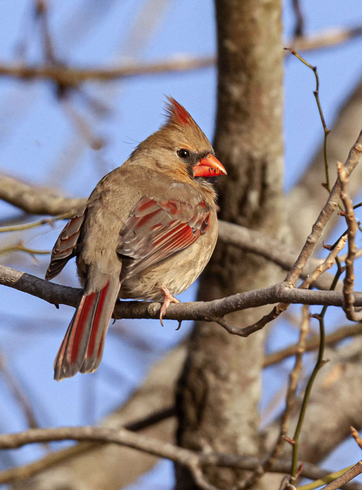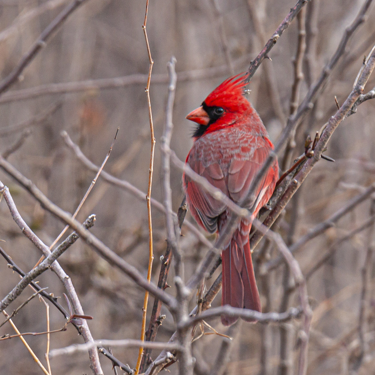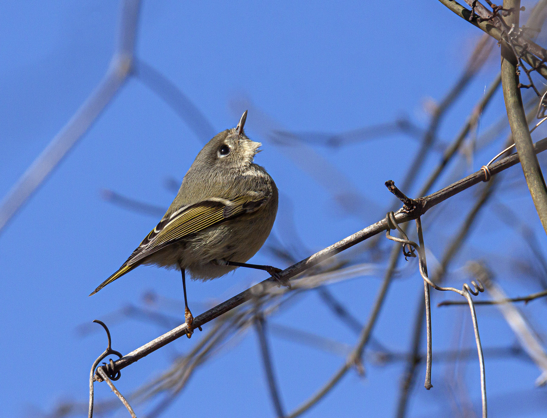 Generally I try to avoid including manmade structures in my wildlife photos, but sometimes you just have to take what you can get. I really like the way that I was able to capture some of the feather details of this male Eastern Bluebird. If you look closely, you can see the bird’s windblown feathers, a look that is cultivated by some stylish humans, who often rely on “product” to achieve the effect rather than on the actual wind.