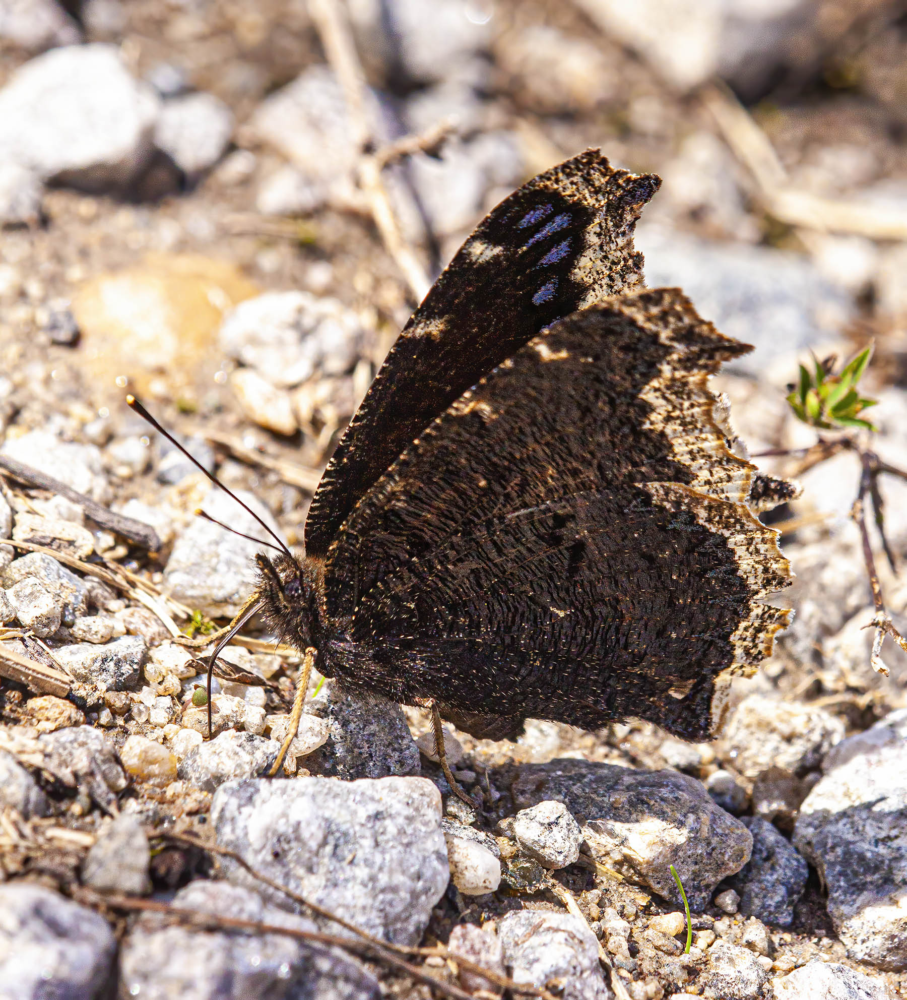 Walter and I shoot with very different gear configurations and we often like to do complementary blog postings to show how two photographers shooting the same subject can produce somewhat different results. I was shooting with my Canon 50D and Tamron 150-600mm zoom lens, which has a minimum focusing distance of 8.9 feet (2.7 meters), so I had to be pretty far from the damselfly to get a shot and focused manually. I was also using a monopod for stability. Walter was shooting with a Panasonic Lumix DMC-FZ300 superzoom camera and a full-sized flash and was able to get a bit closer to our subject and composed his shots from different angles.