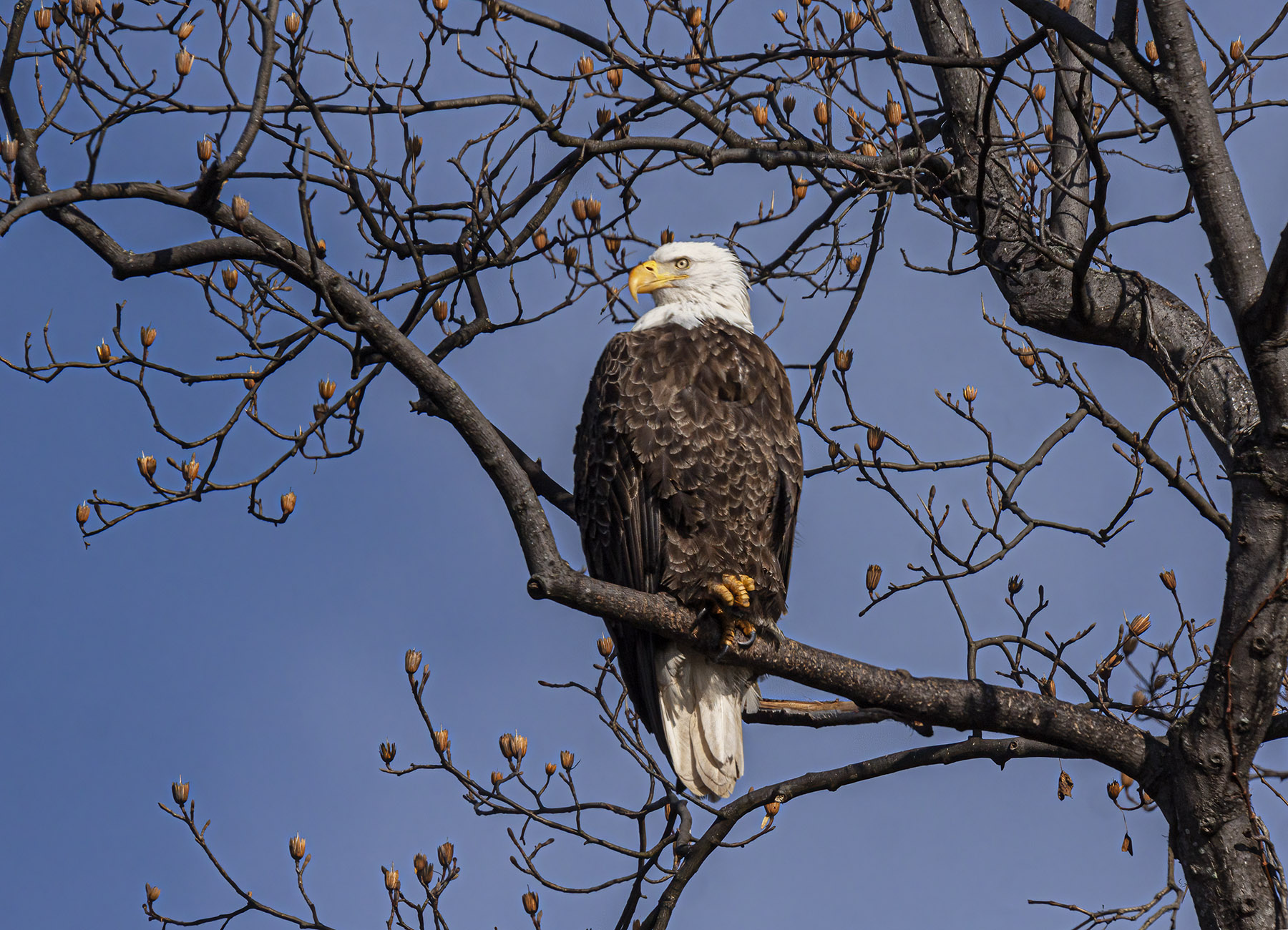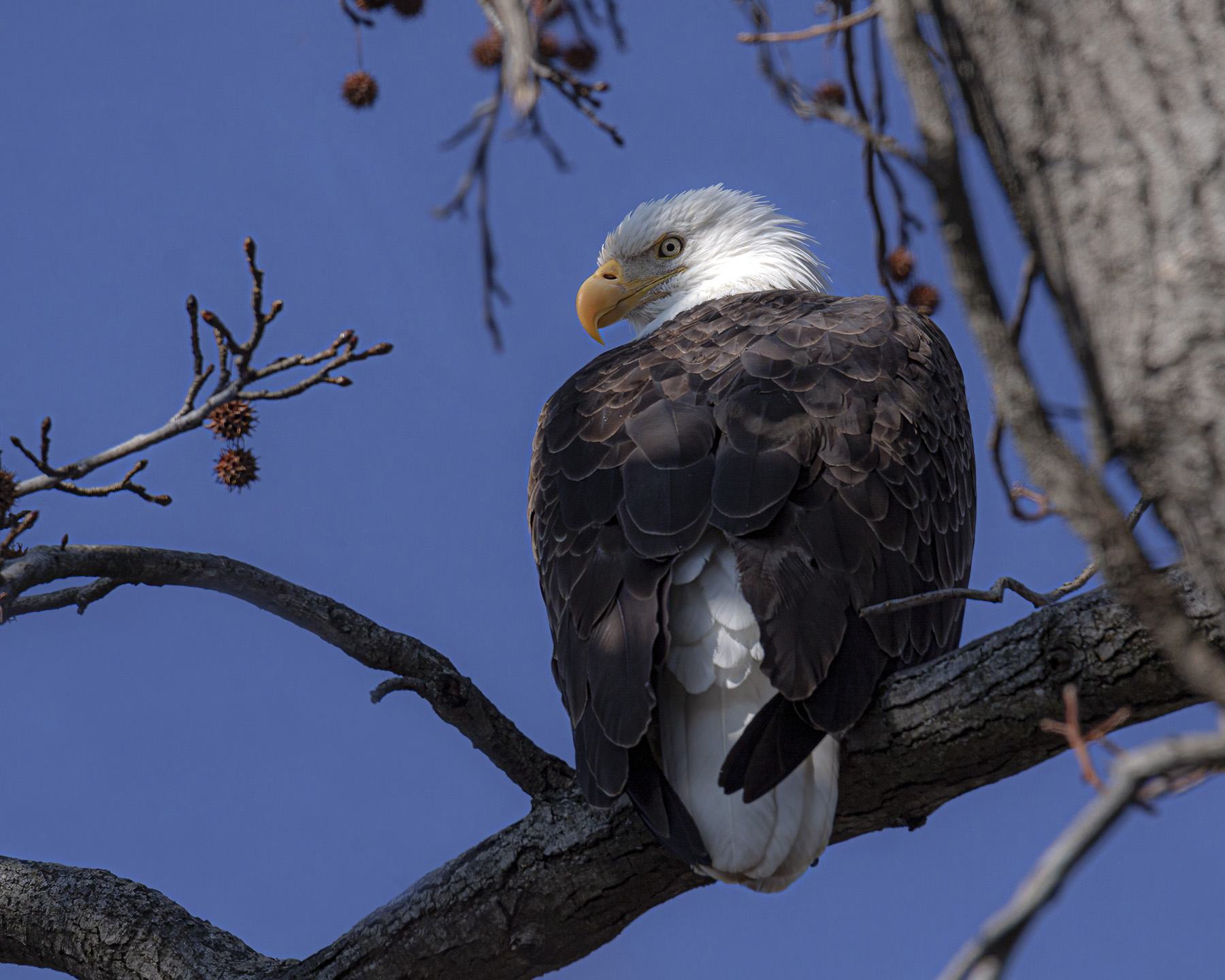 I really like this shot of a Bald Eagle (Haliaeetus leucocephalus) that I spotted in a sweetgum tree at Occoquan Bay National Wildlife Refuge. By almost any standard, it is a much better eagle photo than the one that I posted yesterday and I am glad that I “re-discovered” it. This little experience serves as a good reminder to me that it is important to look back sometimes and not be quite so tunnel-vision focused on getting the next image.