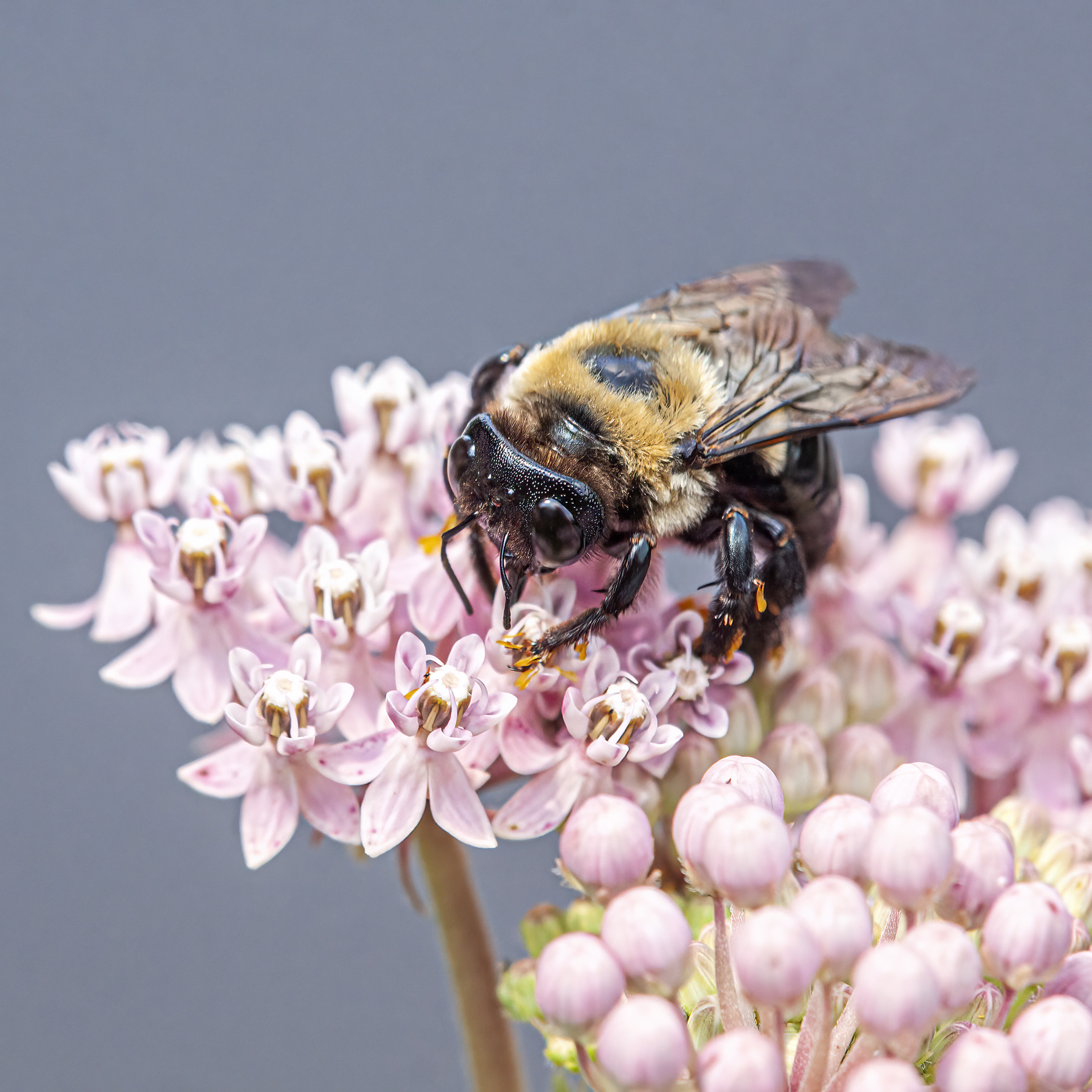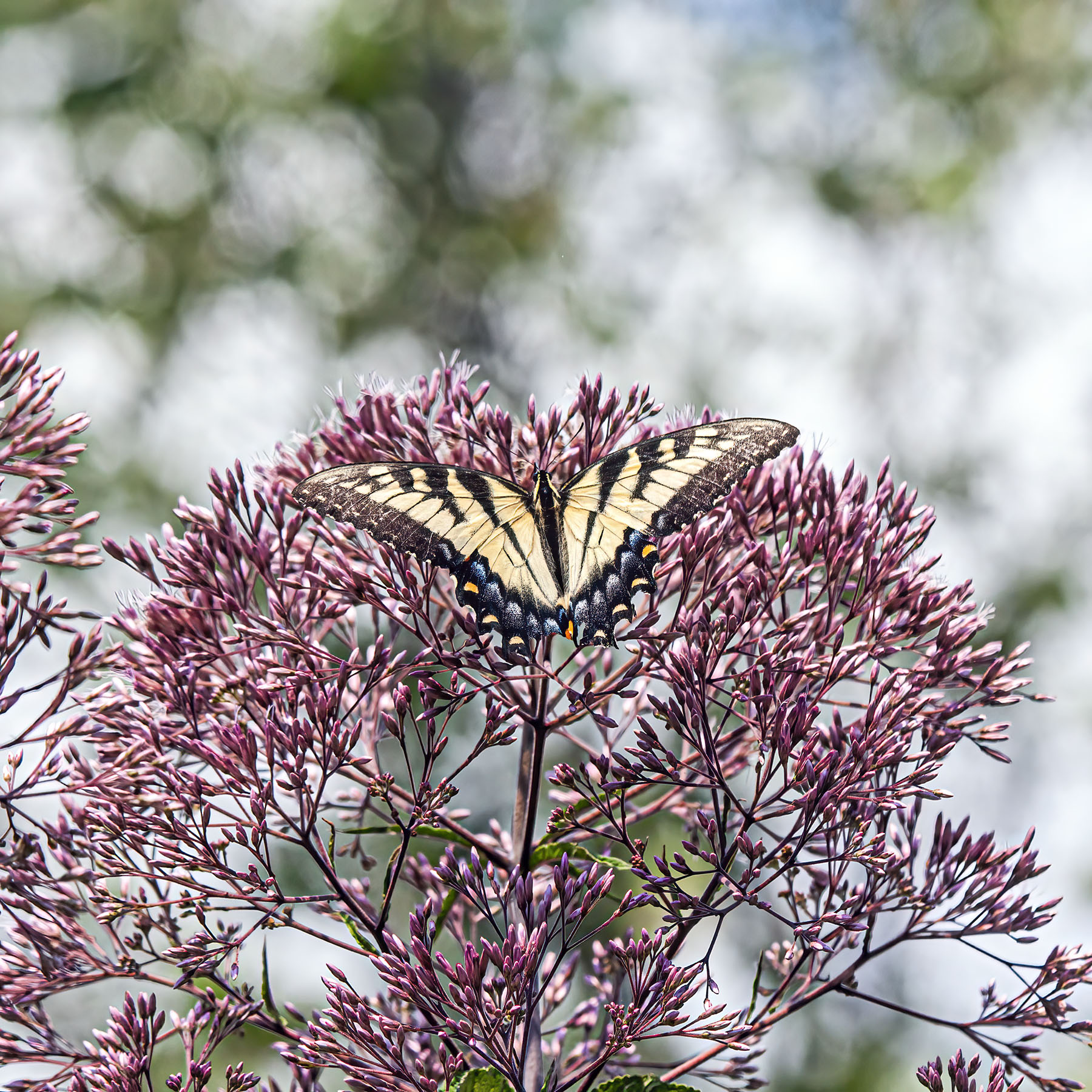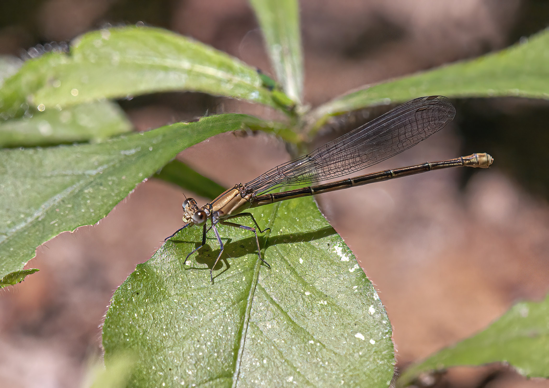 One of the big challenges when photographing dragonflies and damselflies is getting the entire subject in focus—their bodies are long and narrow and are often pointing in a direction that makes it impossible to get sufficient depth of field. This male Big Bluet cooperated by perching in a way that allowed me to photograph him from the side. The damselfly is nicely in focus, while the leafy background is mostly out of focus and does not distract the viewer’s eyes from the primary subject.