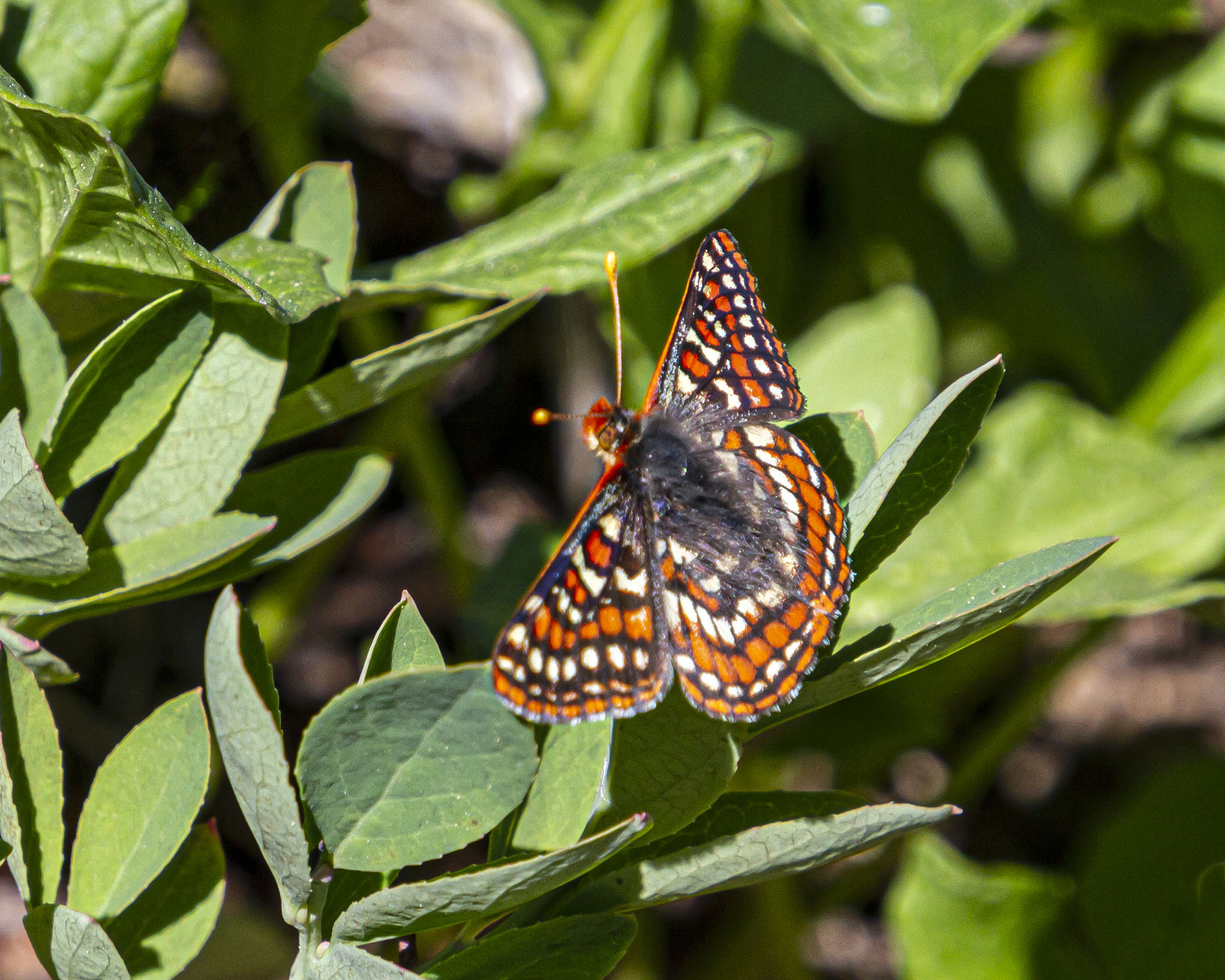 I think they are an Anise Swallowtail (Papilio zelicaon), an Edith’s Checkerspot (Euphydryas editha), and an Arctic Fritillary (Boloria chariclea), none of which I had seen previously. As I have mentioned before, I am not very familiar with Western species, so I therefore welcome corrections if I have identified these butterflies.