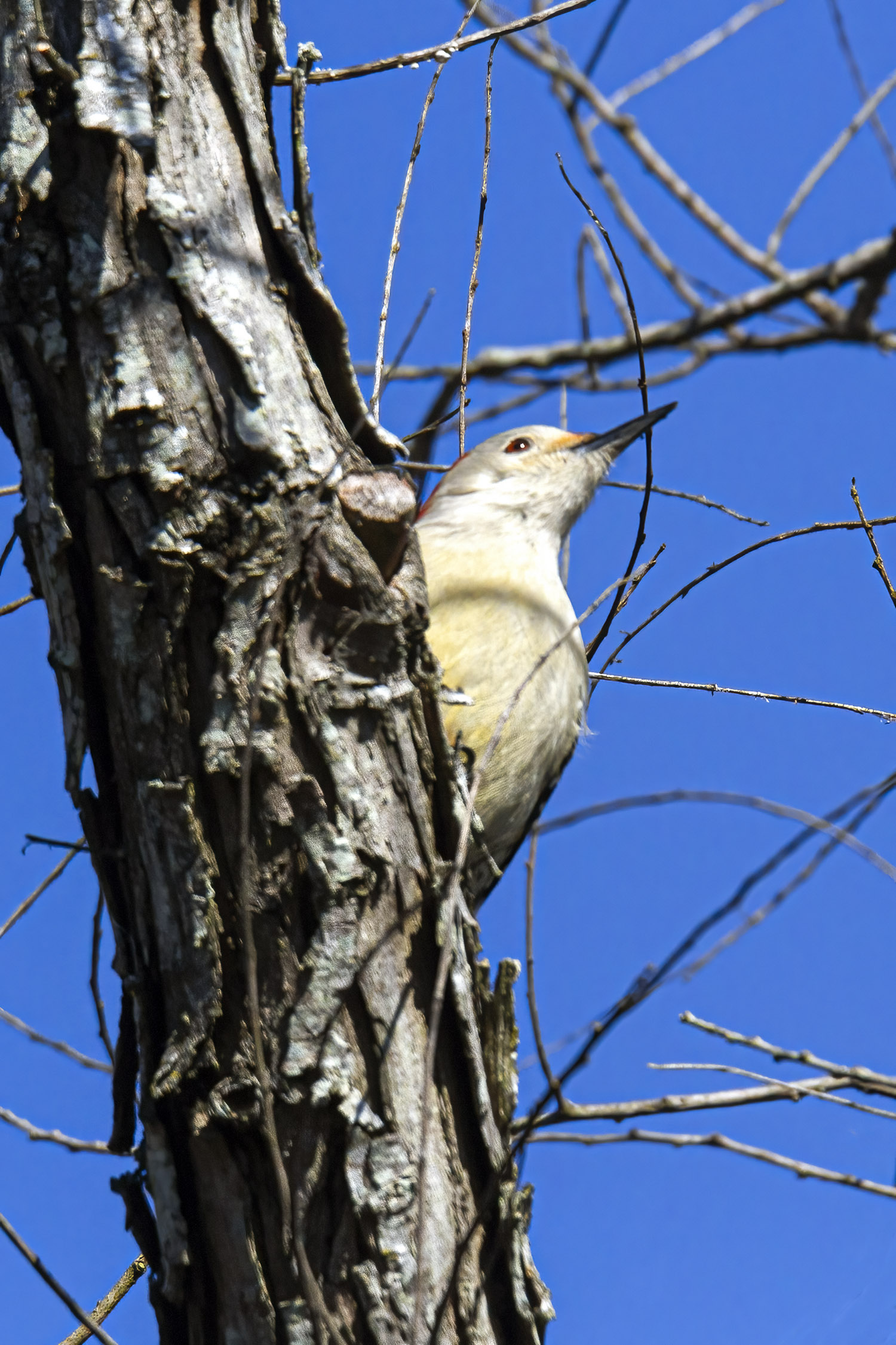 I had a pretty clear view of the turkey’s head from where I was standing, so I decided to go for a portrait close-up portrait shot. I carefully focused on the turkey’s eye and was happy to be able to capture quite a bit of detail in a profile shot when the turkey turned his head to the side.