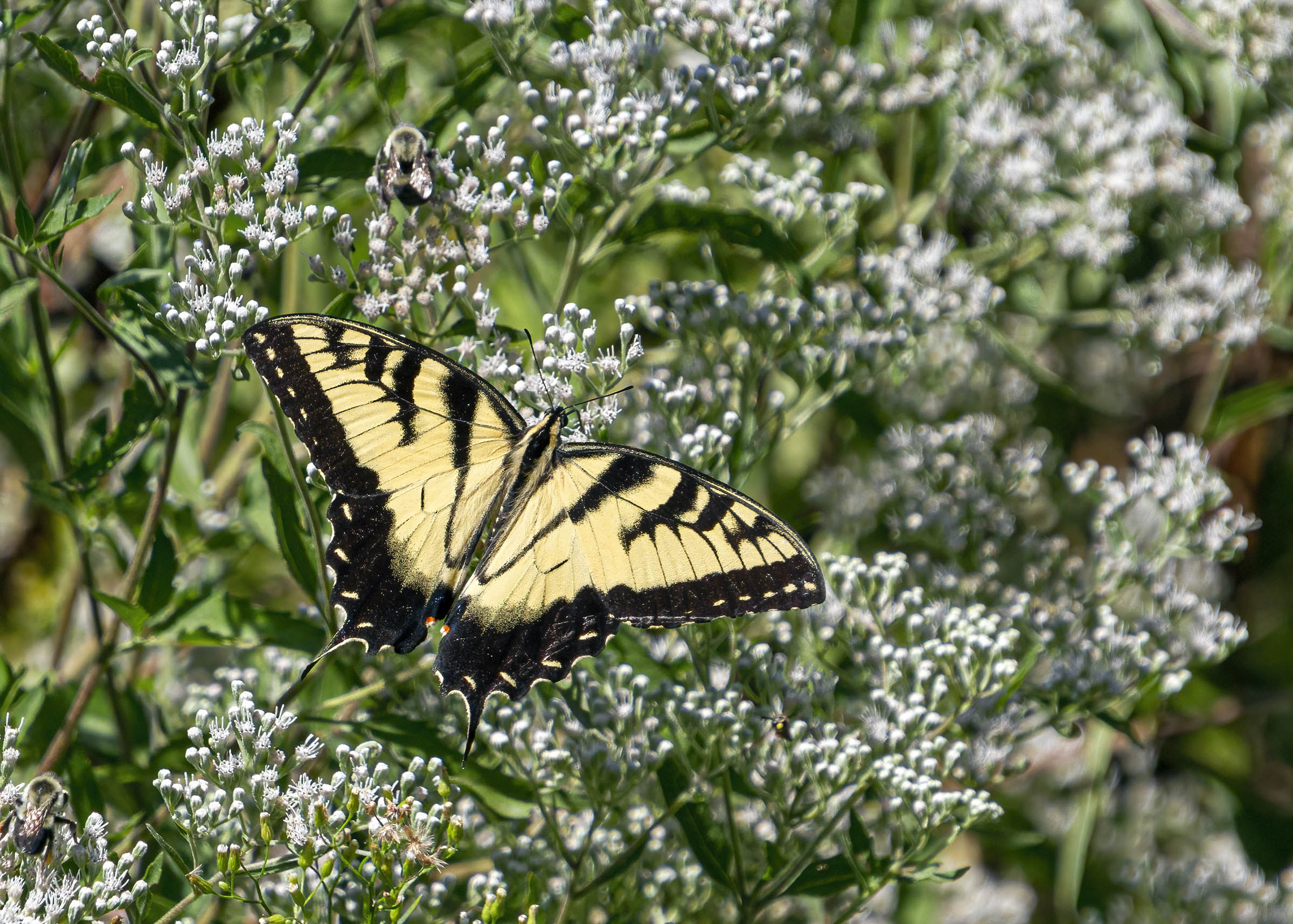 In either case, the butterflies were really active, in almost constant motion as they moved about the the open thistle flowers. I was hoping to get multiple butterflies in a single shot, but was never able to capture more than two of them in any photo, as you can see in the first image below.