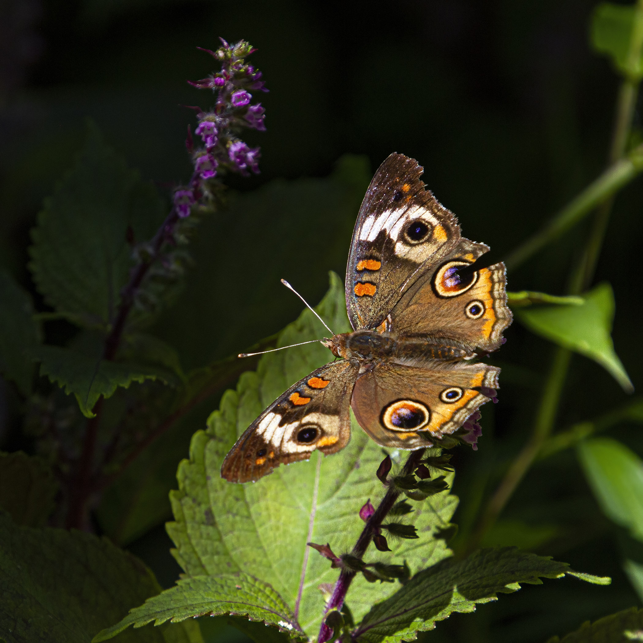 It was wonderful to see so many butterflies still active last week at Occoquan Bay National Wildlife Refuge, including this spectacular Common Buckeye butterfly (Junonia coenia). This butterfly was so feverishly feeding on these flowers that it scarcely seemed aware of my presence, which made it possible to capture shots of this magical creature from various angles. The challenge for me was to time those shots to capture the spectacular colors and patterns of the butterfly when its wings were fully opened.