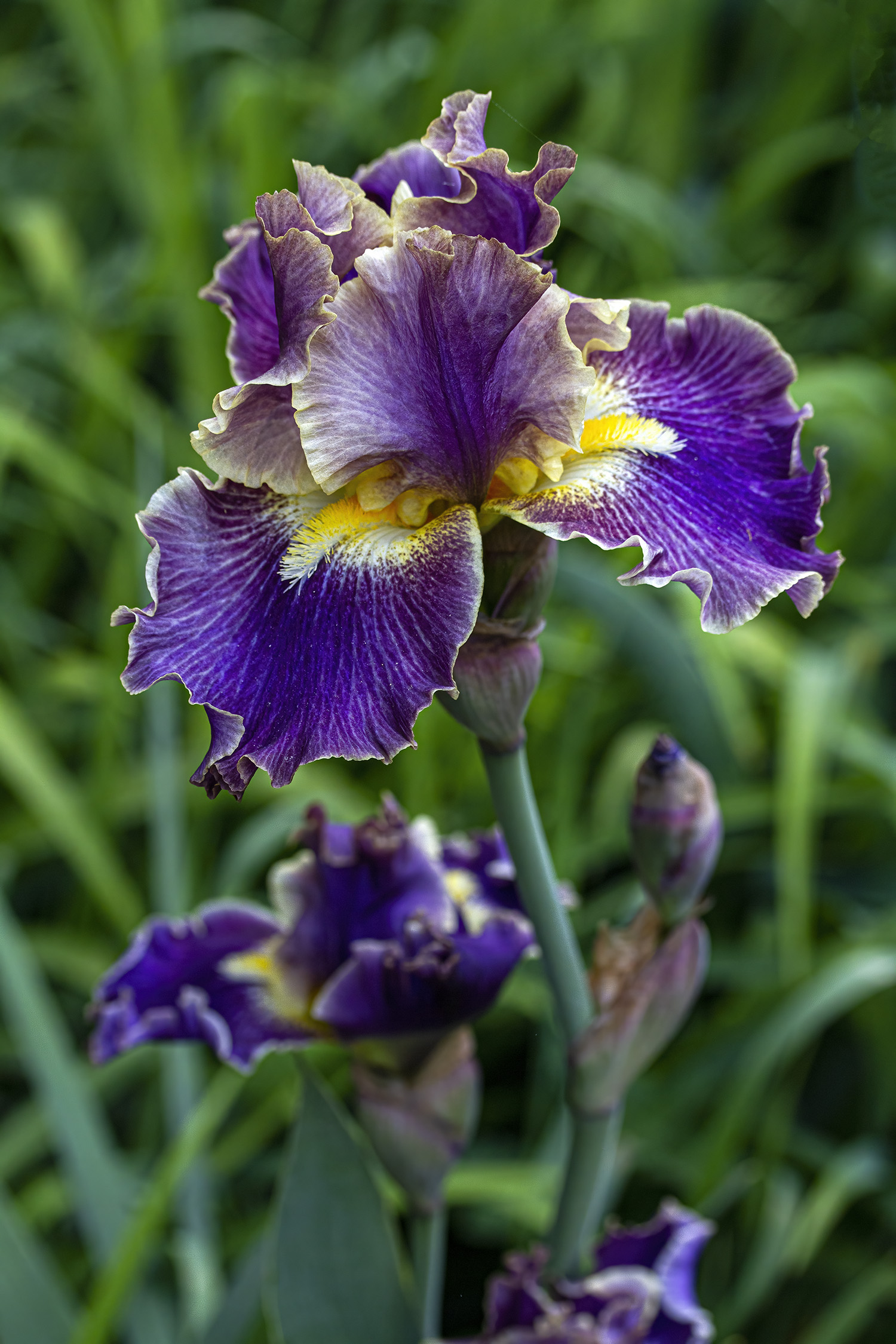 I wanted to draw the viewer’s full attention to the fully open iris flower, so I focused on its yellow beards. However, I also wanted the viewer to get a sense of the partially opened blooms and buds and chose to include them in the composition. When I saw them with my own eyes, all of the flowers were equally in focus, but as you can see in the photo, I used the camera settings to ensure that deliberately chosen elements were in focus, while others elements remained visible, albeit blurred.