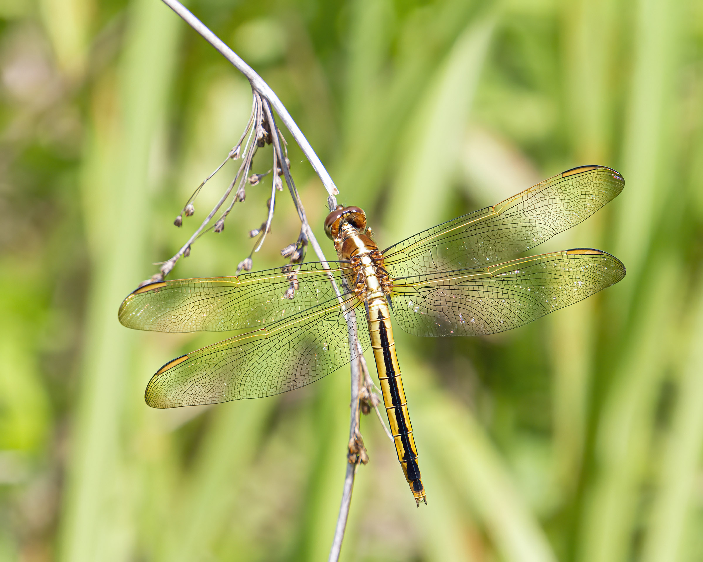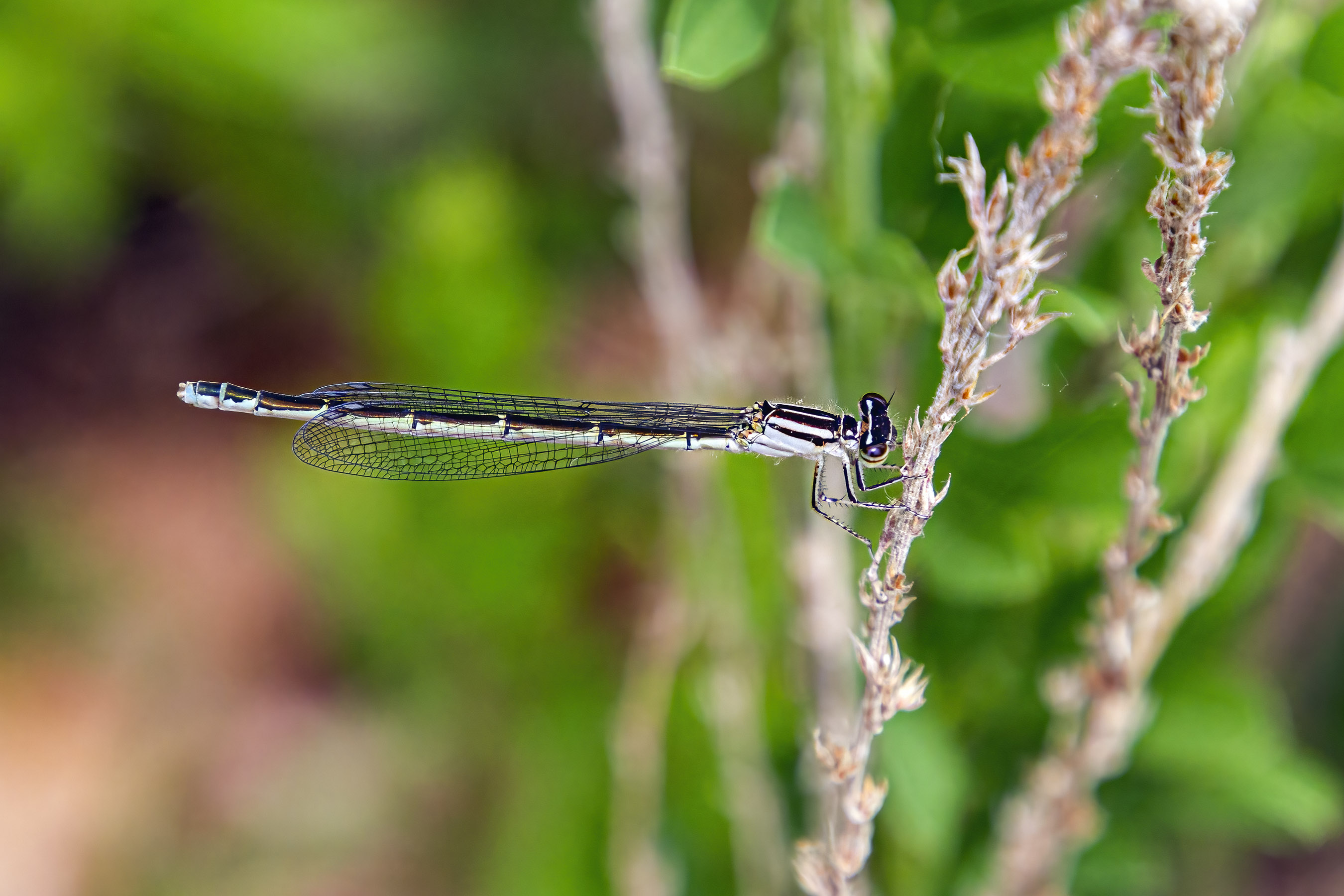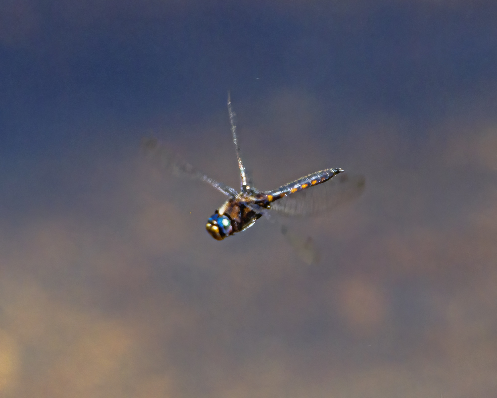 I love the markings of this beautiful butterfly and was thrilled when it held its wings open for a few seconds and let me see the stunning blue markings on its inner wings that stand out among the mostly subdued colors on its body.