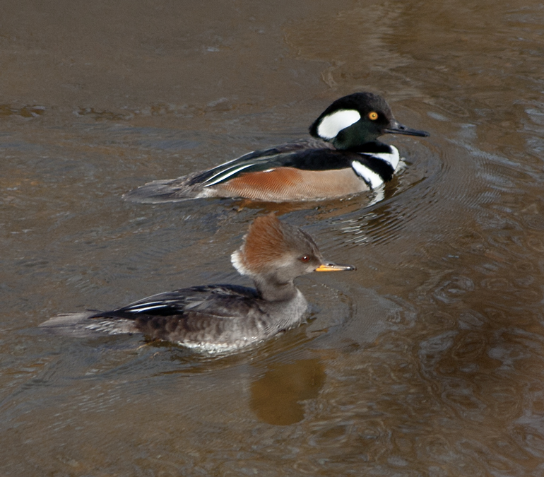 I did manage yesterday to finally get some decent photos of a Hooded Merganser couple together and separately. I ended up having to walk and down the banks of a stream repeatedly as the ducks changes directions every time they seemed to sense me (and eventually flew away) The first photo is probably my favorite, but I like all three of them.