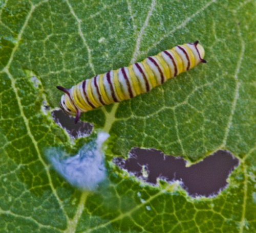 When I was photographing this caterpillar, I noticed that it had a number of water drops on its “fur” and I was happy to see that I was able to capture them. There is something magical about those little globes of water and light.