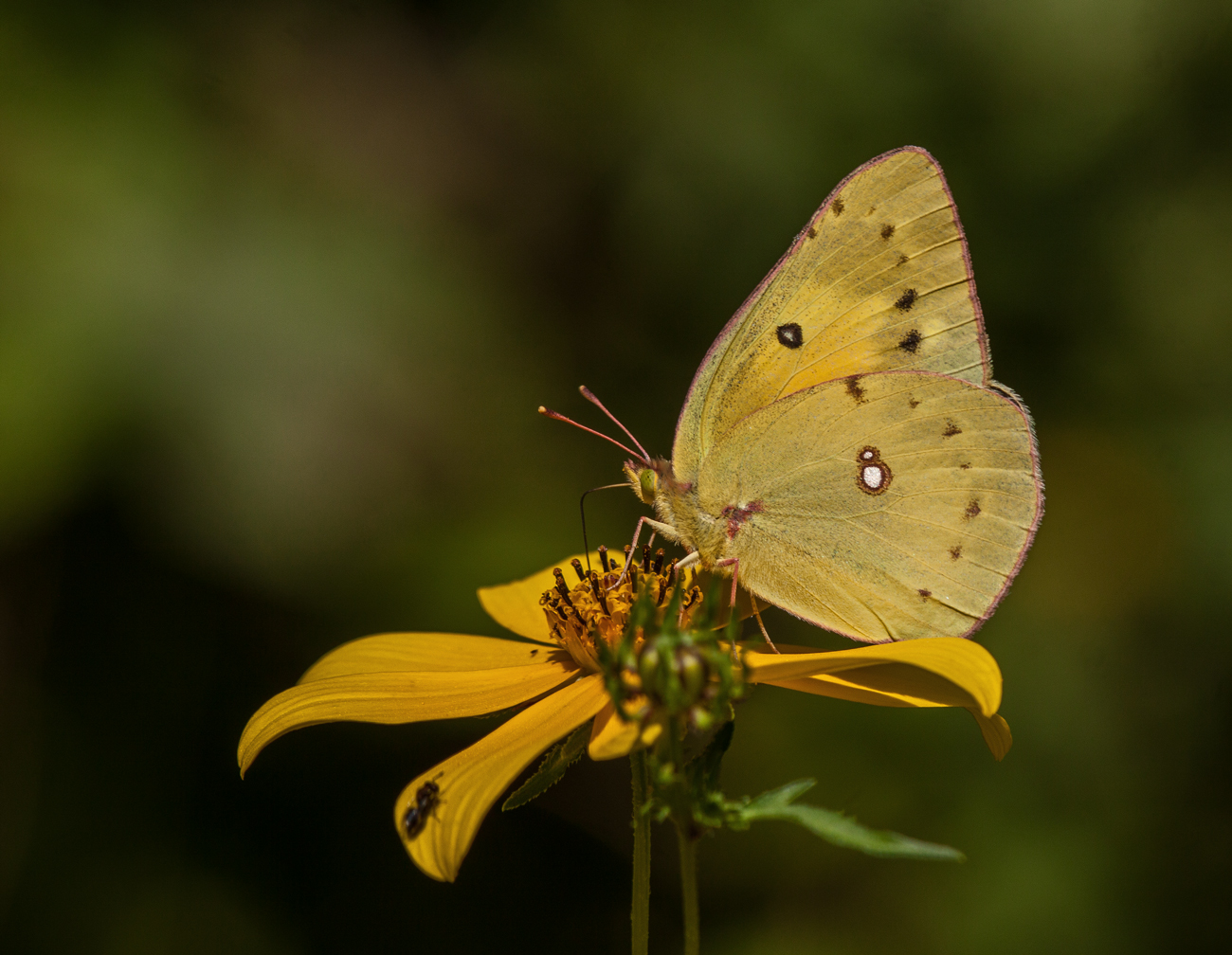 The sunlight coming from the back and side of this Clouded Sulphur butterfly (Colias philodice) produced a really dramatic effect in this image that I captured last Friday at Occoquan Bay National Wildlife Refuge. It looks almost like I had the butterfly posing for me in a photography studio, where I would have had full control over the power and direction of the light.