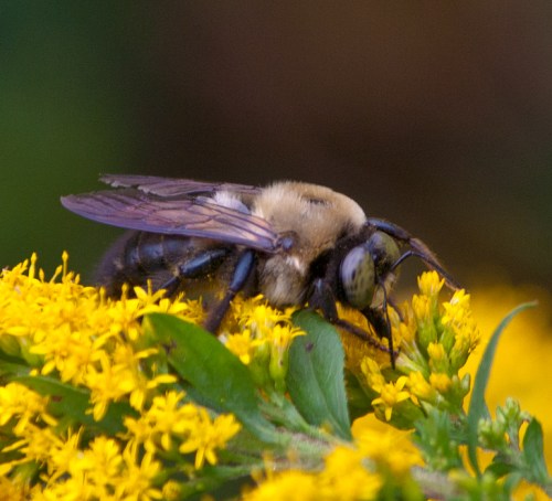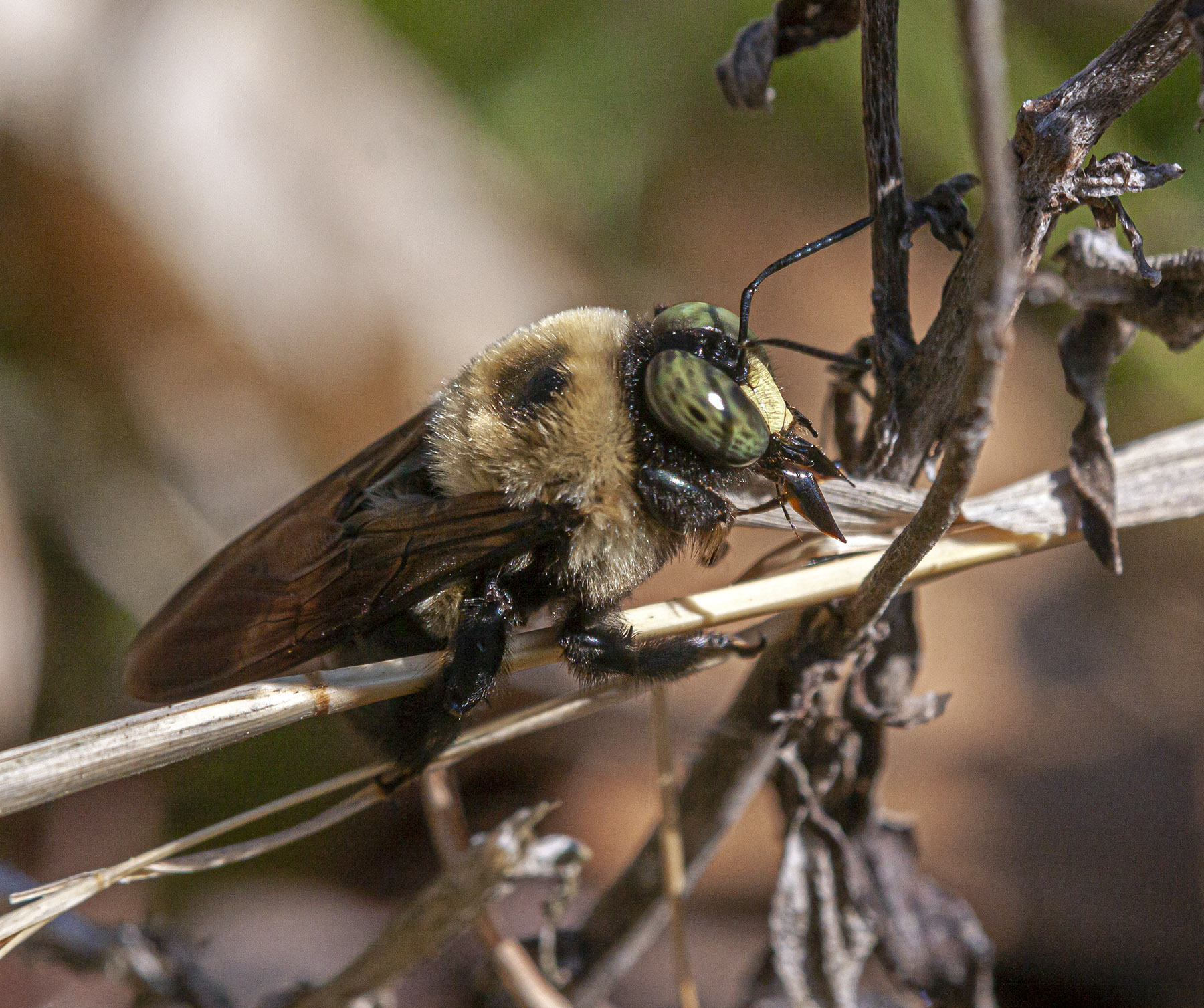 The lighting was quite good and the bee was a bit distracted, so I was able to zoom in close and capture a lot of the details of the bee. I particularly like the speckled green eyes that look like they were carved out of a semiprecious stone. You can also see the bee’s tiny feet as it grasped the edges of the flower. I encourage you to click on the photos, especially the first one, to get a better look at the bee.