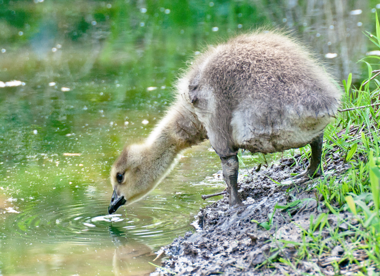It was hard to get clear shots of the youngsters, but I did manage to get this shot that I like when one of the goslings walked to the water’s edge to get a drink.