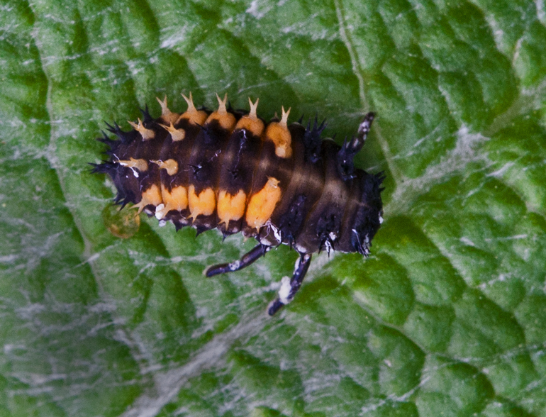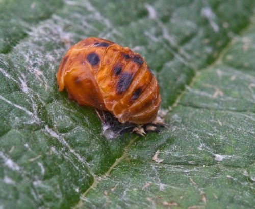 I know that ladybugs don’t really have babies, but, seriously, how many people will read a posting with words like “larva” and “pupa” in the title? A more accurate title would be something like “Larva and Pupa of the Multicolored Asian Lady Beetle (Harmonia axyridis).”