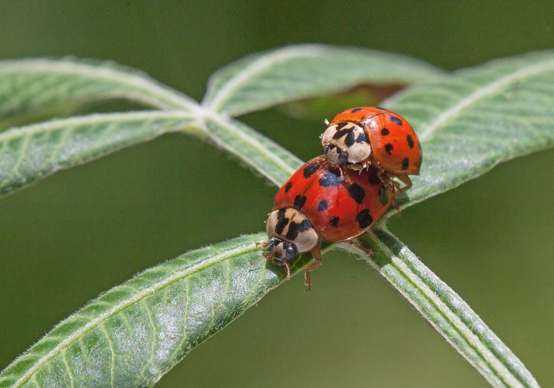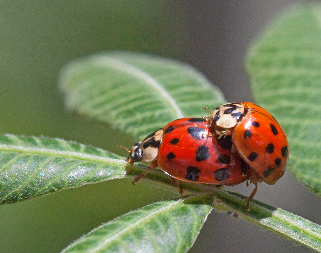After a bit of research, I realized that I had captured two different phases in the life cycles of a ladybug. Lady-bugs.org and ladybug-life-cycle.com offer additional details on the stages of development of a ladybug, but allow me to summarize for folks like me who don’t follow insects for a living. The ladybug’s life cycle is about four to six weeks long, with four stages (egg, larva, pupa, and adult). During the larval stage, the ladybug larvae shed their exoskeletons three times before the pupation stage begins. It is during the pupa stage that the metamorphosis takes place that is almost as magical as it is for butterflies and the insect that I photographed turns into a full grown ladybug.
