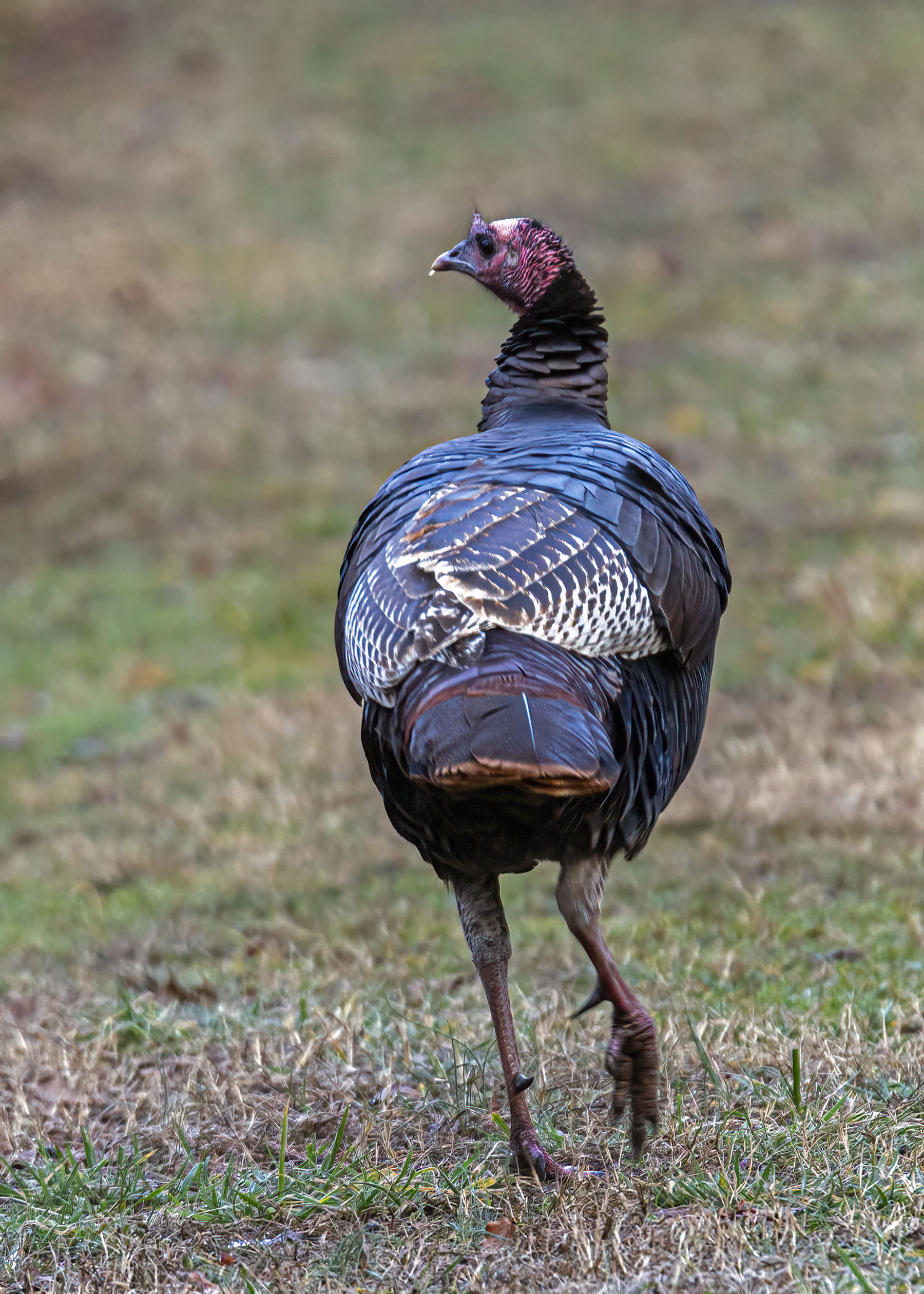 This turkey was slowly walking away from me and I captured this shot when he was in motion. I don’t think that a Wild Turkeys can balance themselves on a single leg when stationary, though perhaps there is a special kind of turkey yoga that enhances their balancing abilities.