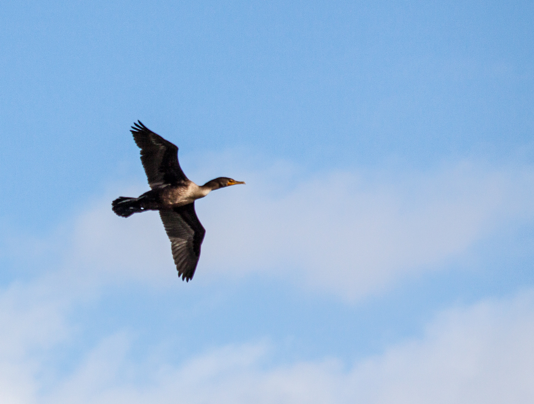 On Wednesday I watched a lone Double-crested Cormorant (Phalacrocorax auritus) as it repeatedly dove into the water in a small suburban pond not far from my townhouse. Generally I encounter cormorants at larger bodies of water, but I know that this manmade pond is deep and is suited to birds that dive for food—some species of migratory diving ducks, for example, overwinter there.