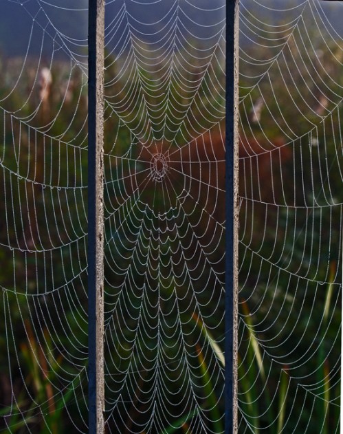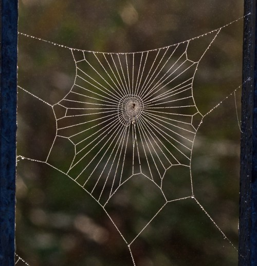 I’ve already posted some photos of spider webs from last Friday morning when I visited Huntley Meadows Park. When I looked over the photos again today, however, I realized I have some more pretty good ones. Once again I am struck by the complexity and the diversity of the webs. Some have primarily straight lines and others have mostly curves. Some are large and intricate, others are smaller and simpler.