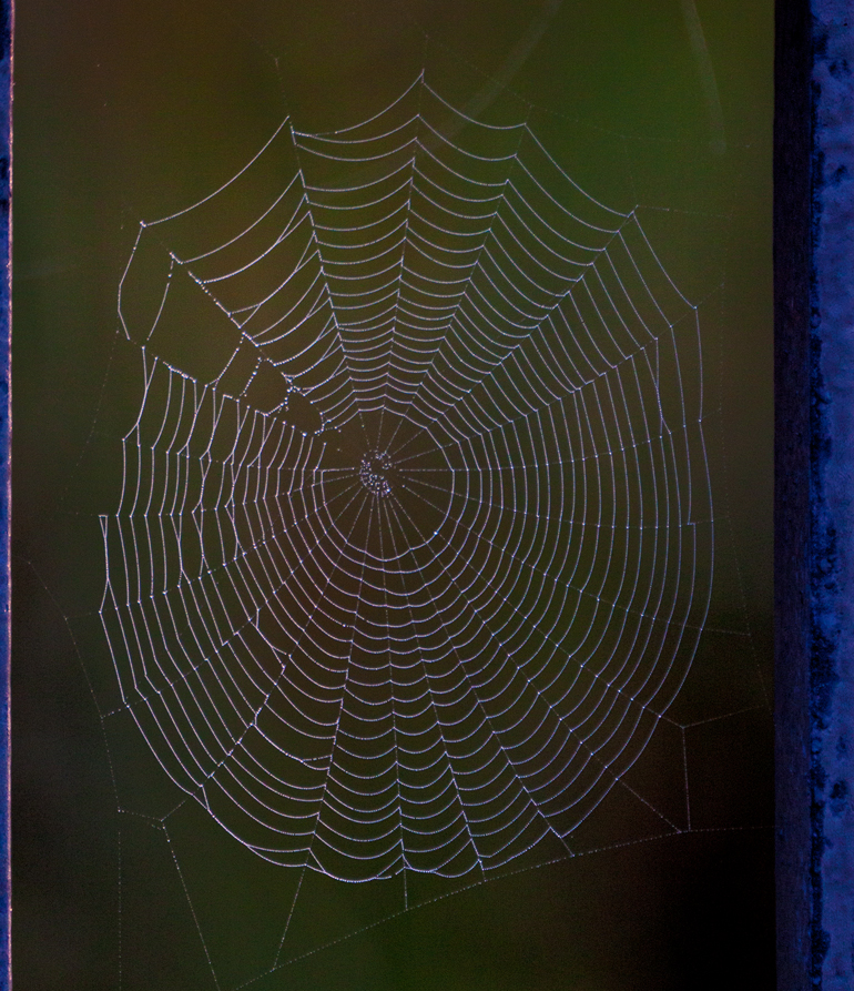In order to make sure that the web did not disappear into the background completely, I deliberately underexposed the image, and focused manually on the web—there was no way that my camera’s autofocus would focus on the web.