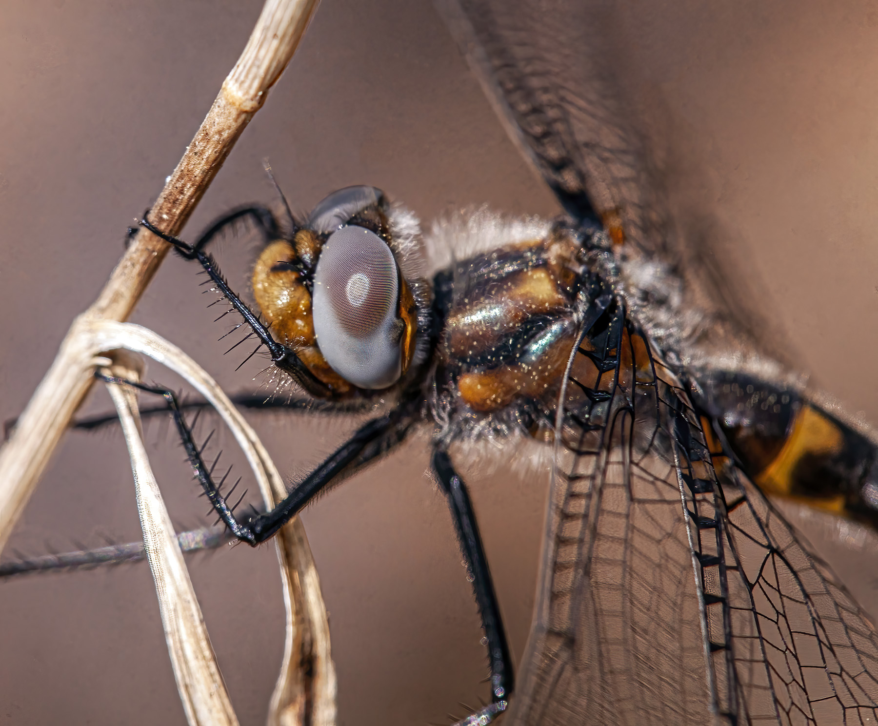 You may also notice that there is a spider on the branch in the final photo that appears to be reaching down and tapping the dragonfly on the “shoulder.” In this scenario, I am not sure which species would be the predator and which would be the prey. I have documented several cases in which dragonflies have been caught in spiderwebs and also a case when a jumping spider took down a much larger dragonfly (see my 2014 posting Spider captures dragonfly—the story for a fascinating series of images).