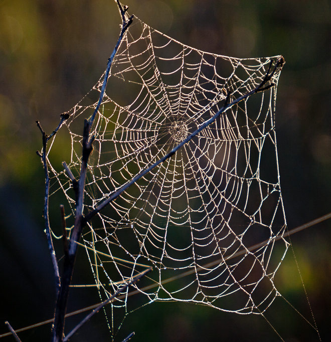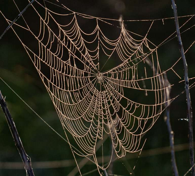 Only a few of the webs had visible spiders and I chose to highlight one of those in the first image, which is a close-up of the web shown in the final shot. The webs themselves are not perfect and have gaps and breaks in some places, an appropriate metaphor for the lives that most of us live.