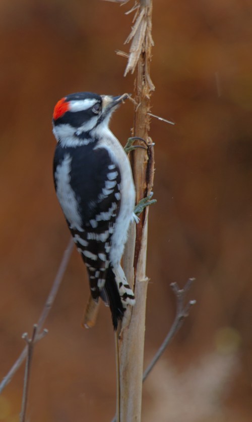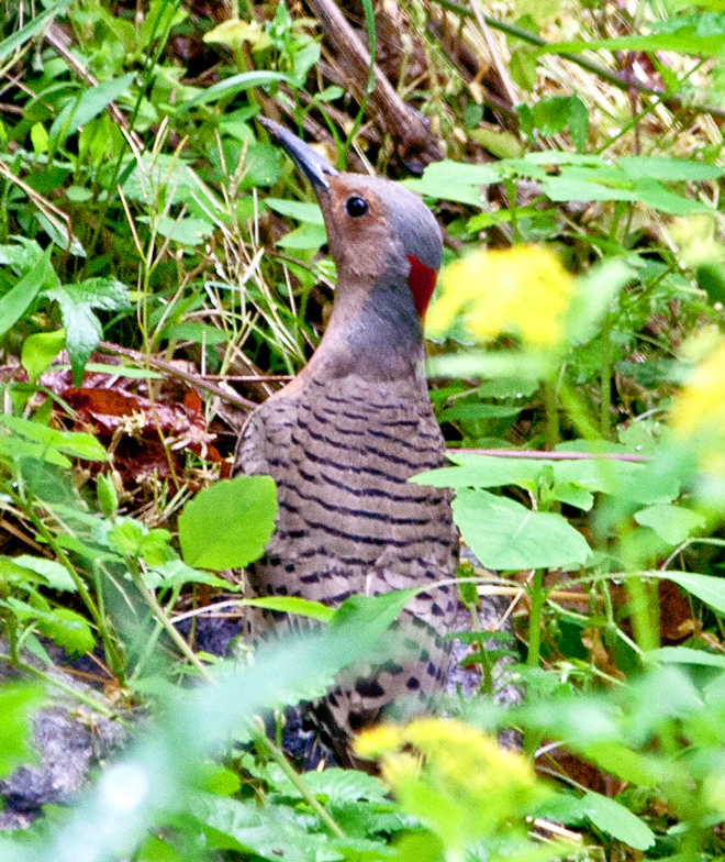 I am still trying to get photos of the larger woodpeckers that made the impressive series of holes. I hear a jackhammer-like sound when they are working, but they manage to elude me each time.